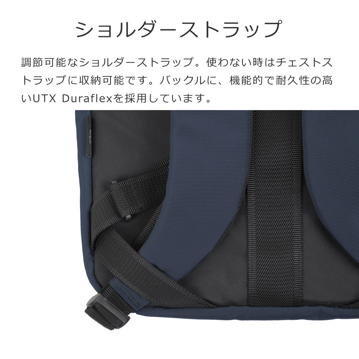 長さ調節可能なショルダーストラップです。使わない時はチェストストラップに収めることもできます。バックルには、機能的で耐久性の高いUTX Duraflexを採用しています。