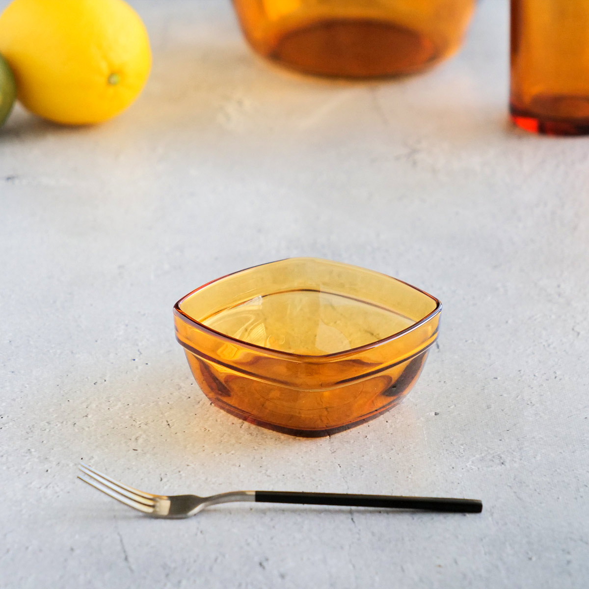 レトロな雰囲気がお洒落なアンバーカラーのボウルです。デザートのアイスやフルーツの盛り付け、ディップソース入れにもぴったりな小さめサイズです。