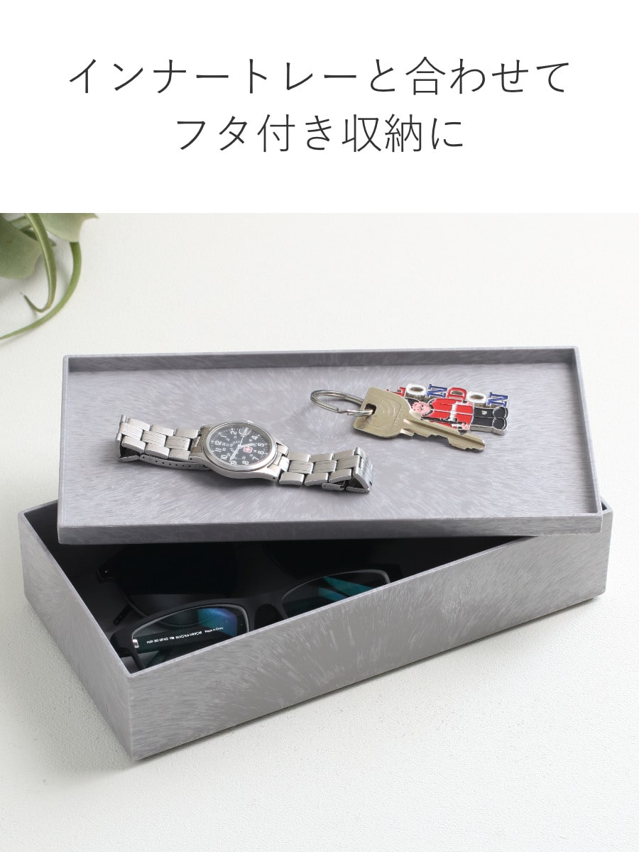別売りのインナートレーを組み合わせれば、フタ付きの収納ボックスとしてお使いいただけます。ホコリや汚れなどを防ぐだだけでなく、完全に収納物を隠してくれるので玄関やテーブル上など人目に付く場所の収納にもおすすめです。