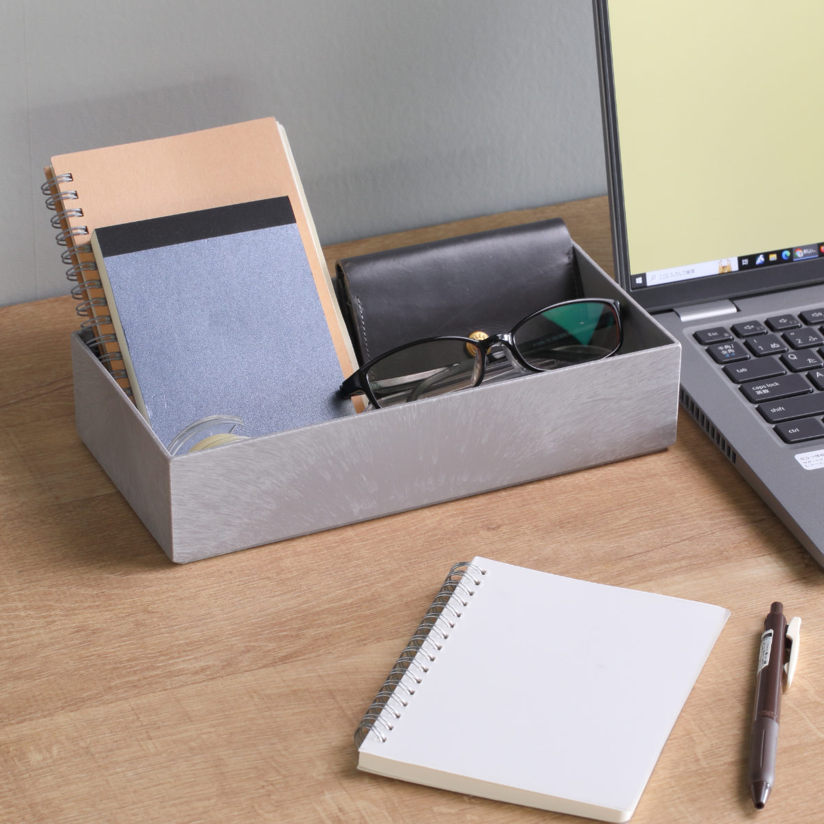 別売りのインナートレーを組み合わせれば、フタ付きの収納ボックスとしてお使いいただけます。ホコリや汚れなどを防ぐだだけでなく、完全に収納物を隠してくれるので玄関やテーブル上など人目に付く場所の収納にもおすすめです。