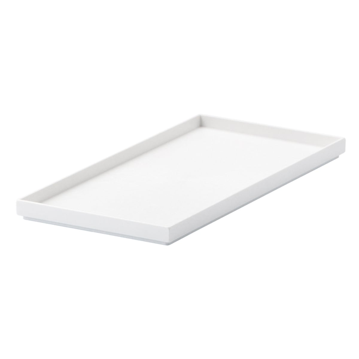 側面が垂直なので並べて使うときや壁際で使うとき隙間なく使うことができます。トレー底面の全周に約3mmのリブが付いているので、ボックスに載せても段差ができず、見た目にもすっきりとしたデザインを保ちます。