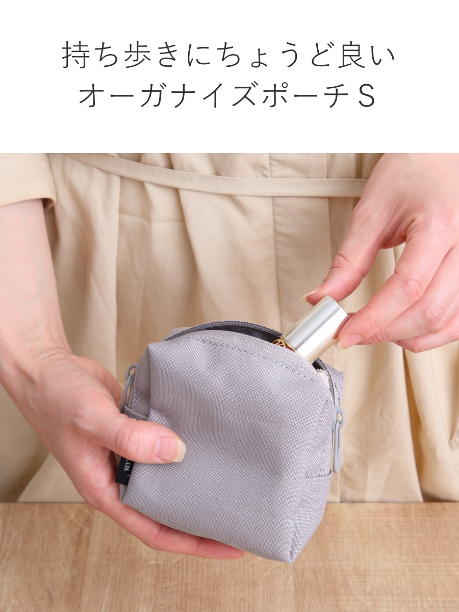 オーガナイズポーチSはミニサイズで、持ち歩きに最適です。リップクリームや常備薬などを入れるのにちょうどよい大きさです。