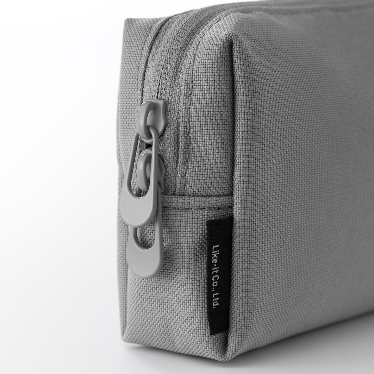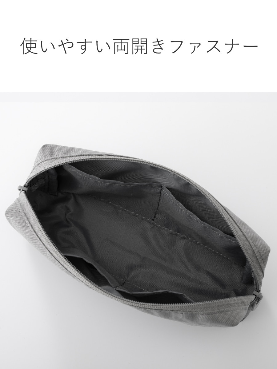 ボックスに入れたままでも開け閉めしやすい両開きファスナー仕様です。ファスナーの引き手同士が干渉せずにコンパクトに収まります。