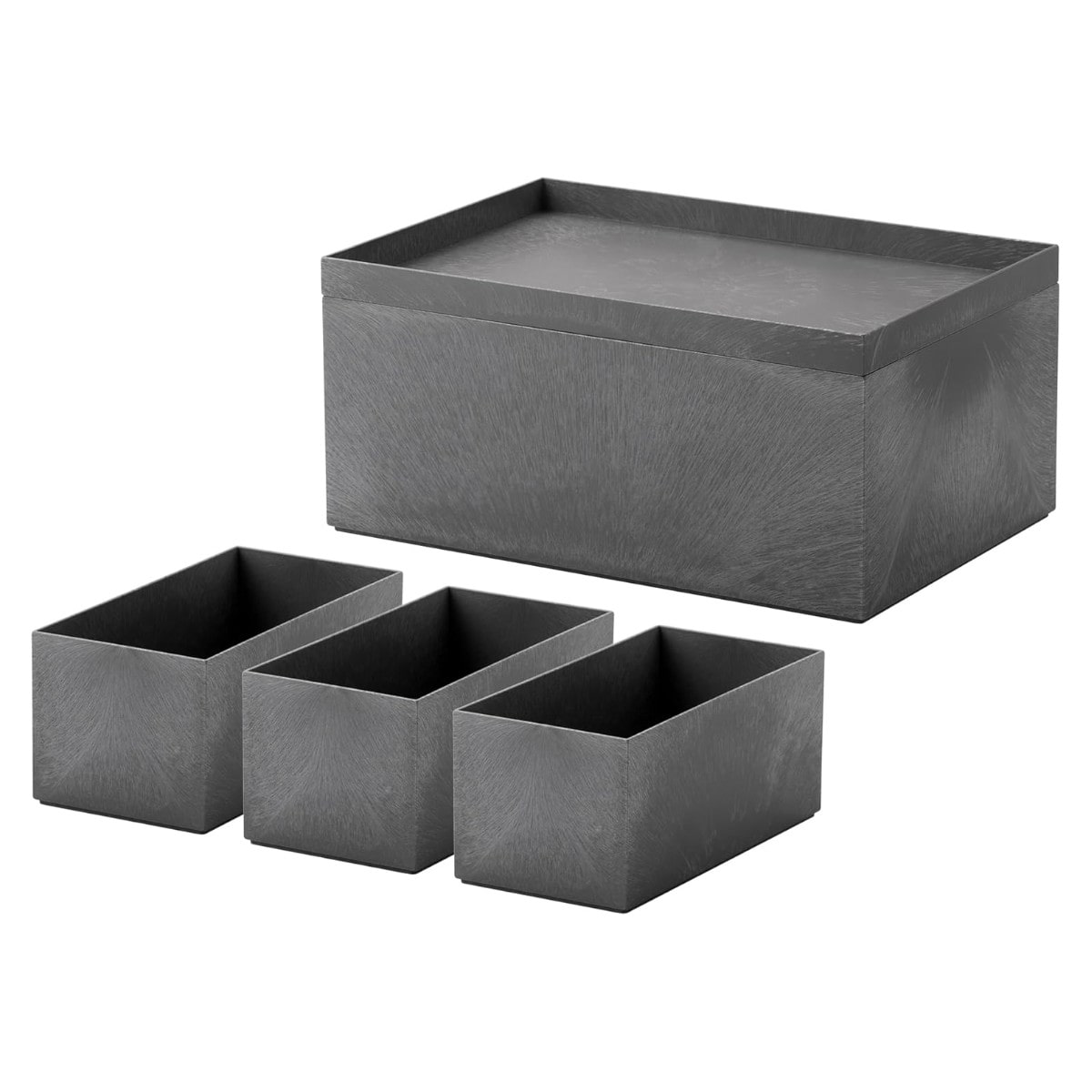 深型収納ボックス×1個、深型インナーケース×3個、収納トレー×1個が一緒になった5点セットです。付属しているインナーケース3個は、ボックス内で縦縦縦にも縦横横にも組み合わせられるモジュール設計で、収納する物に合わせて使い分けができます。