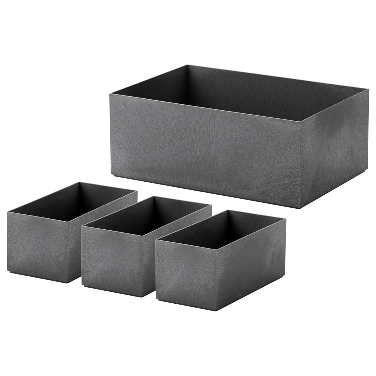 深型収納ボックス×1個、深型インナーケース×3個が一緒になった4点セットです。付属しているインナーケース3個は、ボックス内で縦縦縦にも縦横横にも組み合わせられるモジュール設計で、収納する物に合わせて使い分けができます。