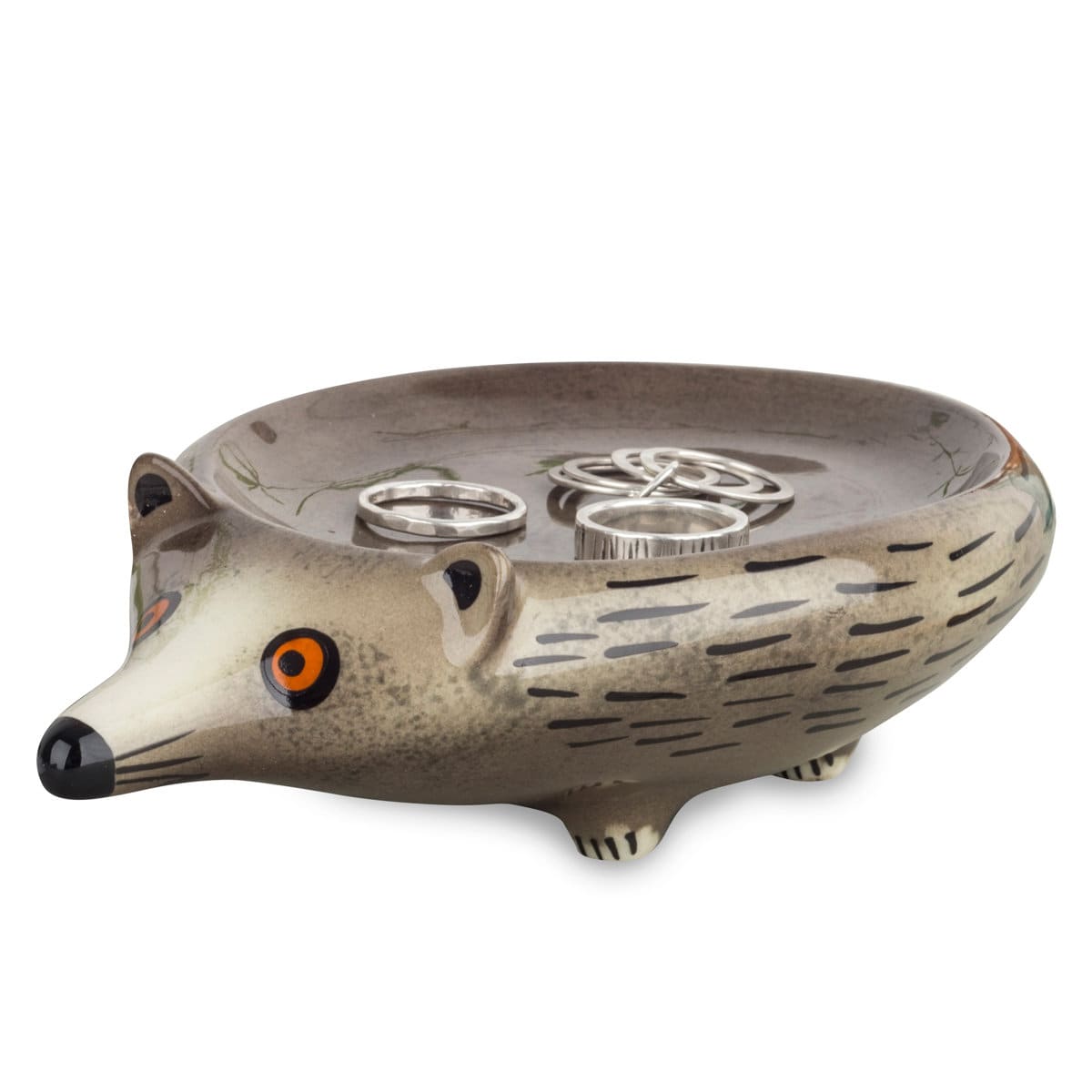 ハリネズミをモチーフにした小物用トレイです。大切なアクセサリーや鍵を愛らしい表情で受け止めてくれます。他にも、グリーンプランターの受皿や、お玉などの調理器具置き、ソープディッシュなど、家中で様々な使い方ができます。