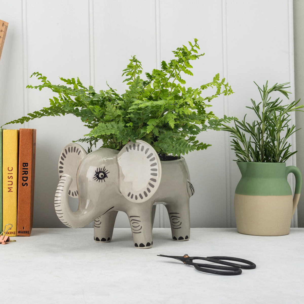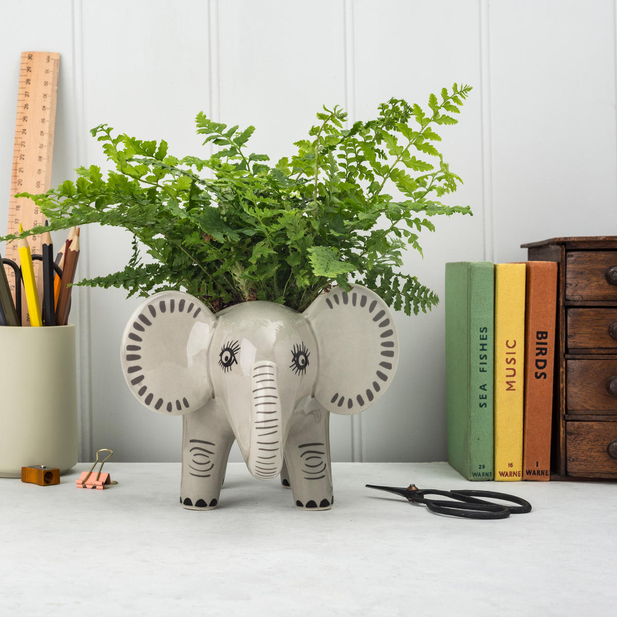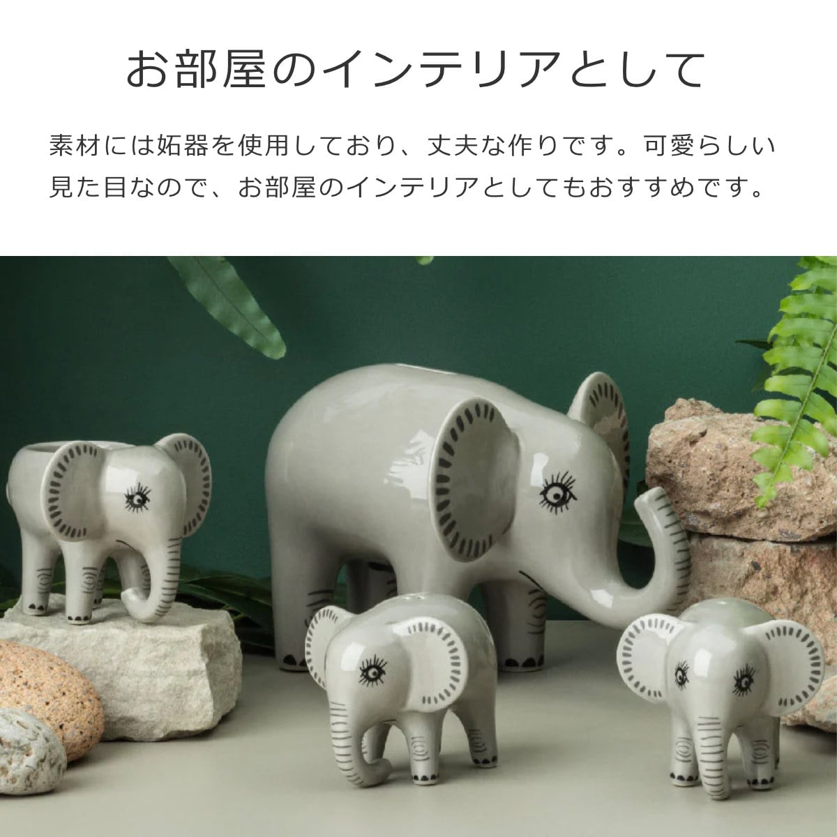 ゾウをモチーフにしたプランターです。室内で使いやすい程よいサイズ感なので、サボテンや多肉植物、エアープランツなどの観葉植物を入れて、様々な表情を楽しめます。