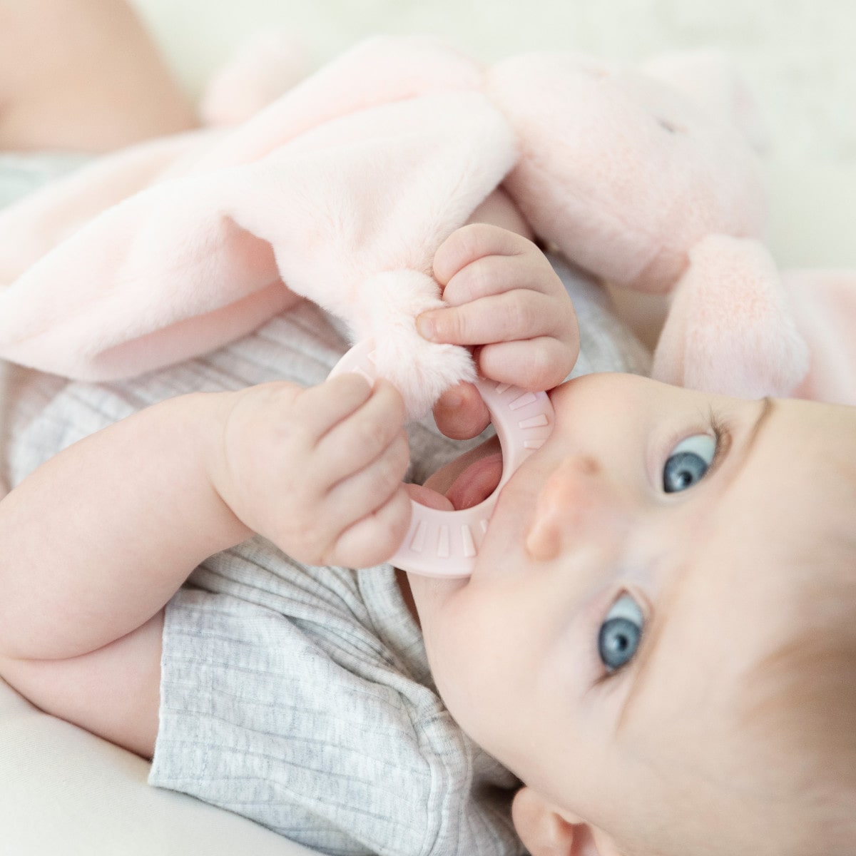動物たちの手の部分にある歯固めリングは、食品グレードシリコーンゴムが使用されており、BPAフリー、PVCフリーと安全性が保証されています。乳歯が生えてくる時の歯茎の違和感を、表面の凹凸で優しく刺激し和らげます。
