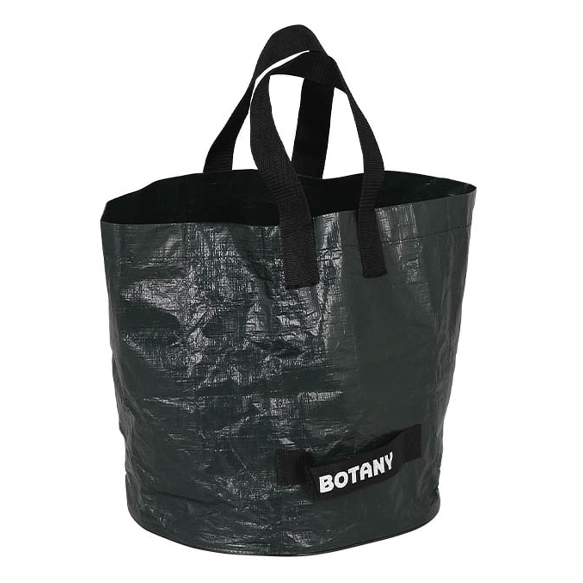 深いグリーンのボディ、ブラックの持ち手に仕立てたホワイトのBOTANYロゴがお洒落なデザインです。なんとなく物を詰め込んで部屋の片隅に置いても絵になります。