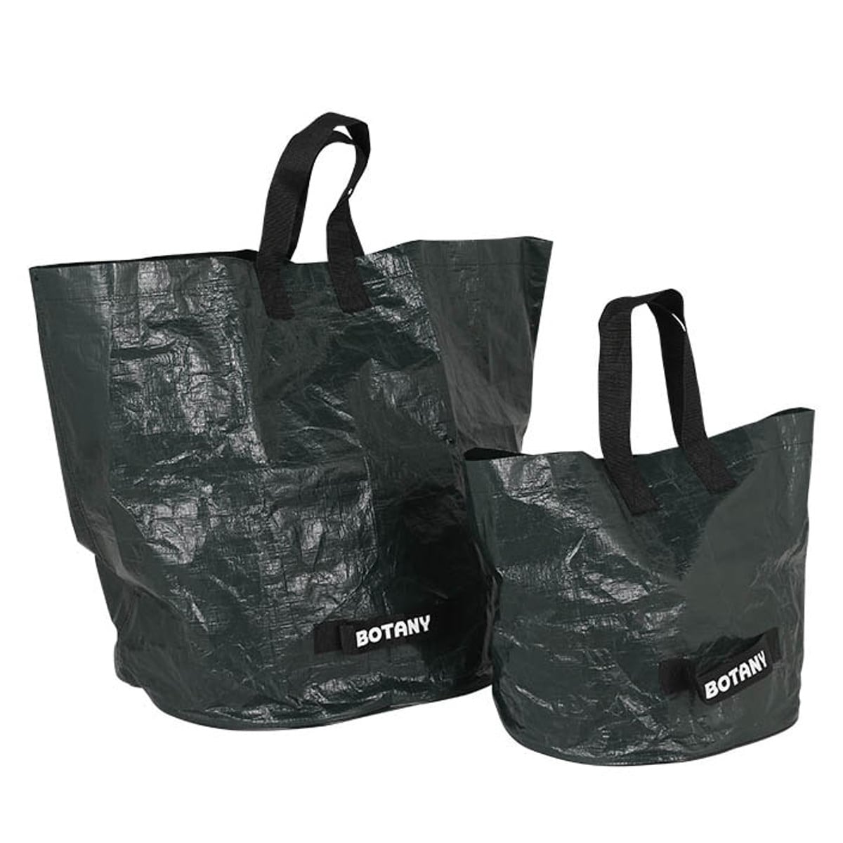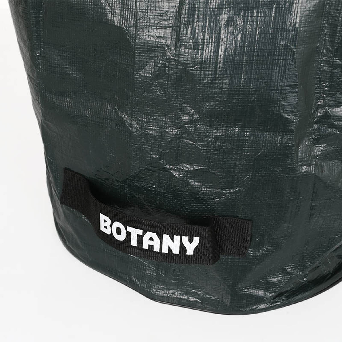 深いグリーンのボディ、ブラックの持ち手に仕立てたホワイトのBOTANYロゴがお洒落なデザインです。なんとなく物を詰め込んで部屋の片隅に置いても絵になります。