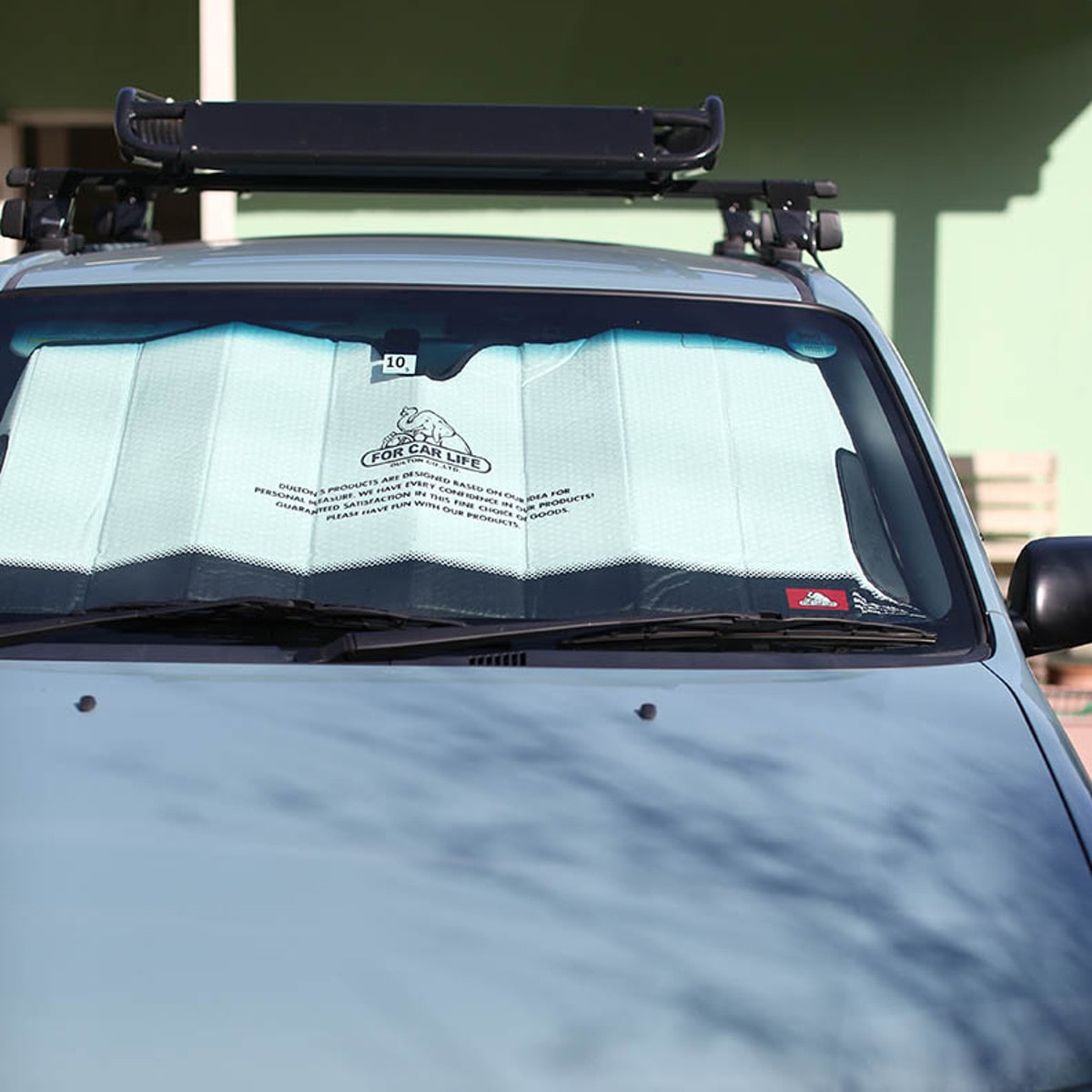 車内温度の上昇と、ダッシュボードなどの劣化を軽減します。温度上昇を抑えることでエアコンの効率UPにつながり、ガソリン代も節約できます。夏以外も降り注ぐ紫外線対策もできるので、通年使用がオススメです。
