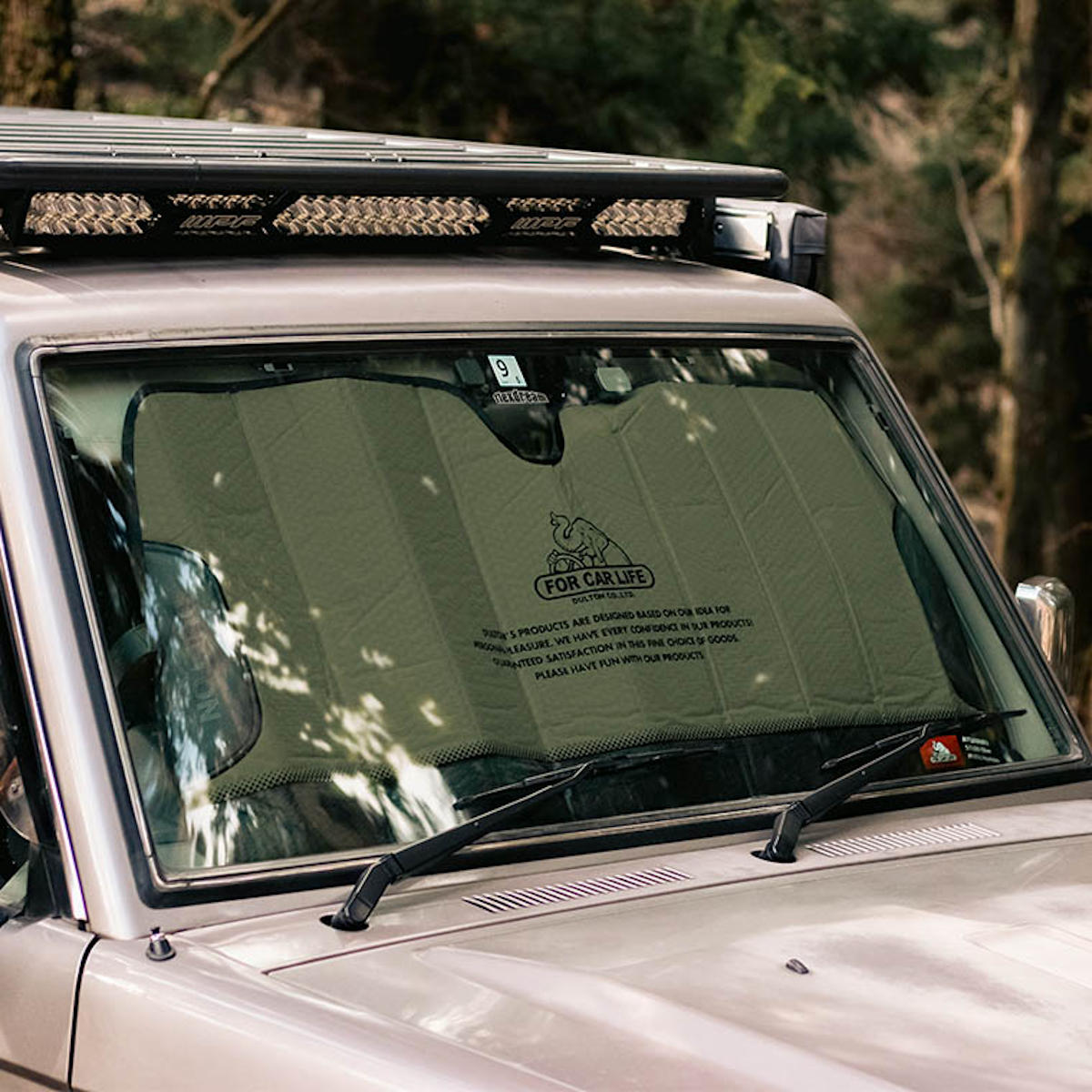 まるで荒野を力強く駆け抜ける四駆を思い起こさせる、ヴィンテージ感漂うサンシェードです。愛車のカラーに合わせたり、差し色にしたり、選ぶのが楽しくなる豊富なカラーバリエーションも魅力です。