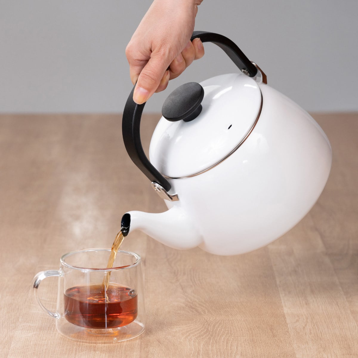 ホーロー製ケトルは熱効率がいいので、ガス火でもIH調理でもお湯を早く沸かすことができます。また、ホーローの表面はガラス質で金気を出さないのが特長です。コーヒーやお茶を淹れたり、パックを入れて麦茶を沸かしても、風味を損ねずにおいしく作ることができます。