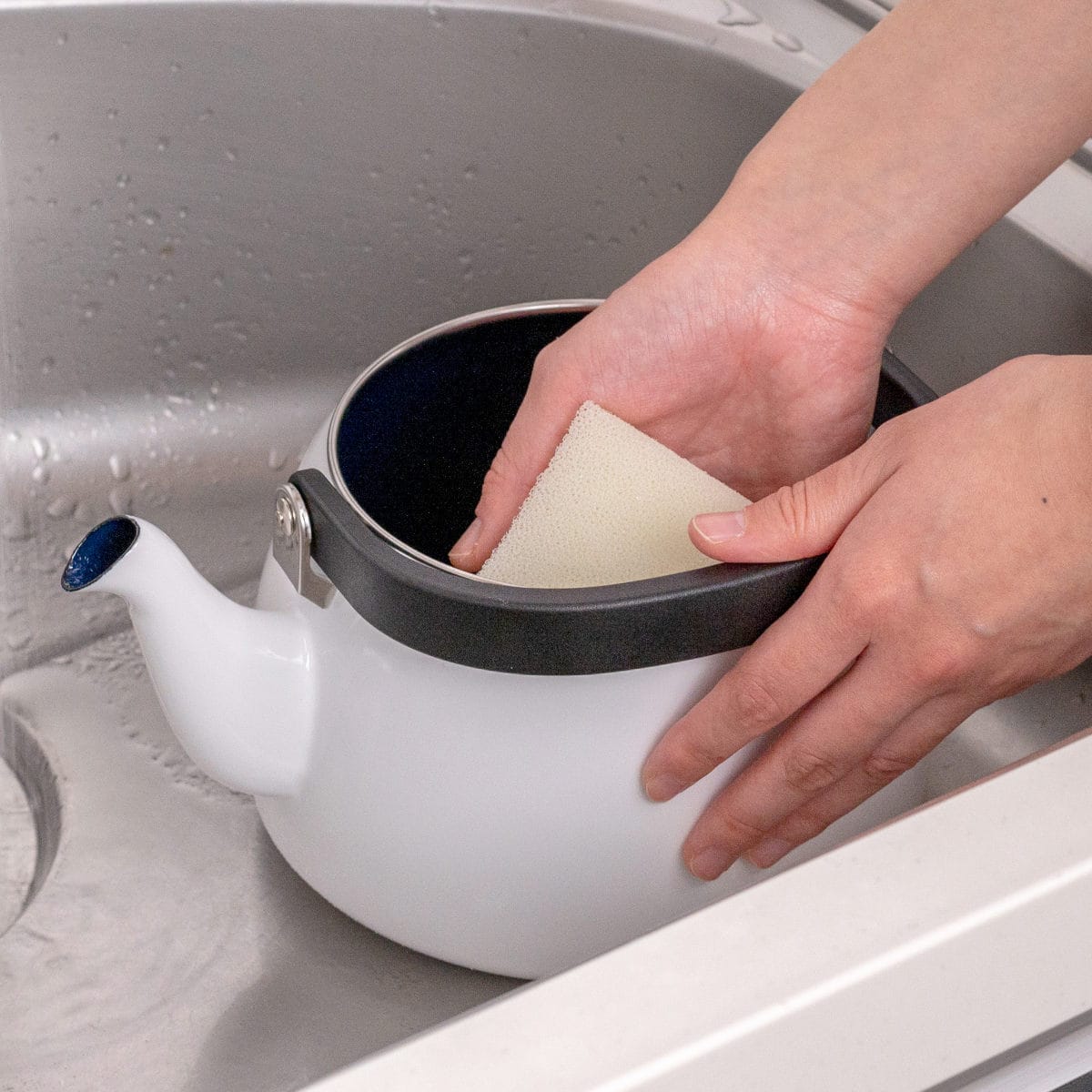 ケトル内面のお手入れがしやすいワイドな開口部です。ケトルの中まで手を入れることができるので、しっかりと洗えます。また、ハンドルが大きく倒れるので、給水しやすいのも嬉しいポイントです。