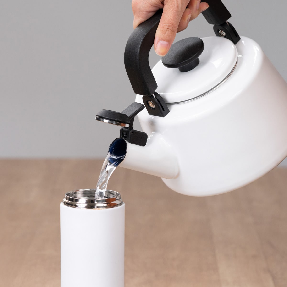 大きすぎず使い勝手の良いサイズ設計です。実際には約1.3Lのお湯を沸かすことができ、2人分にぴったりです。