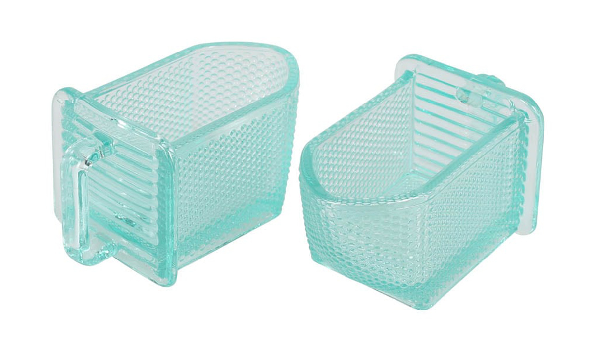 分厚く青みがかったガラス容器のポットです。約150mlの容量があります。角砂糖やスパイスなどの調味料入れとしてはもちろん、クリップなどの文具をまとめるのにも便利です。