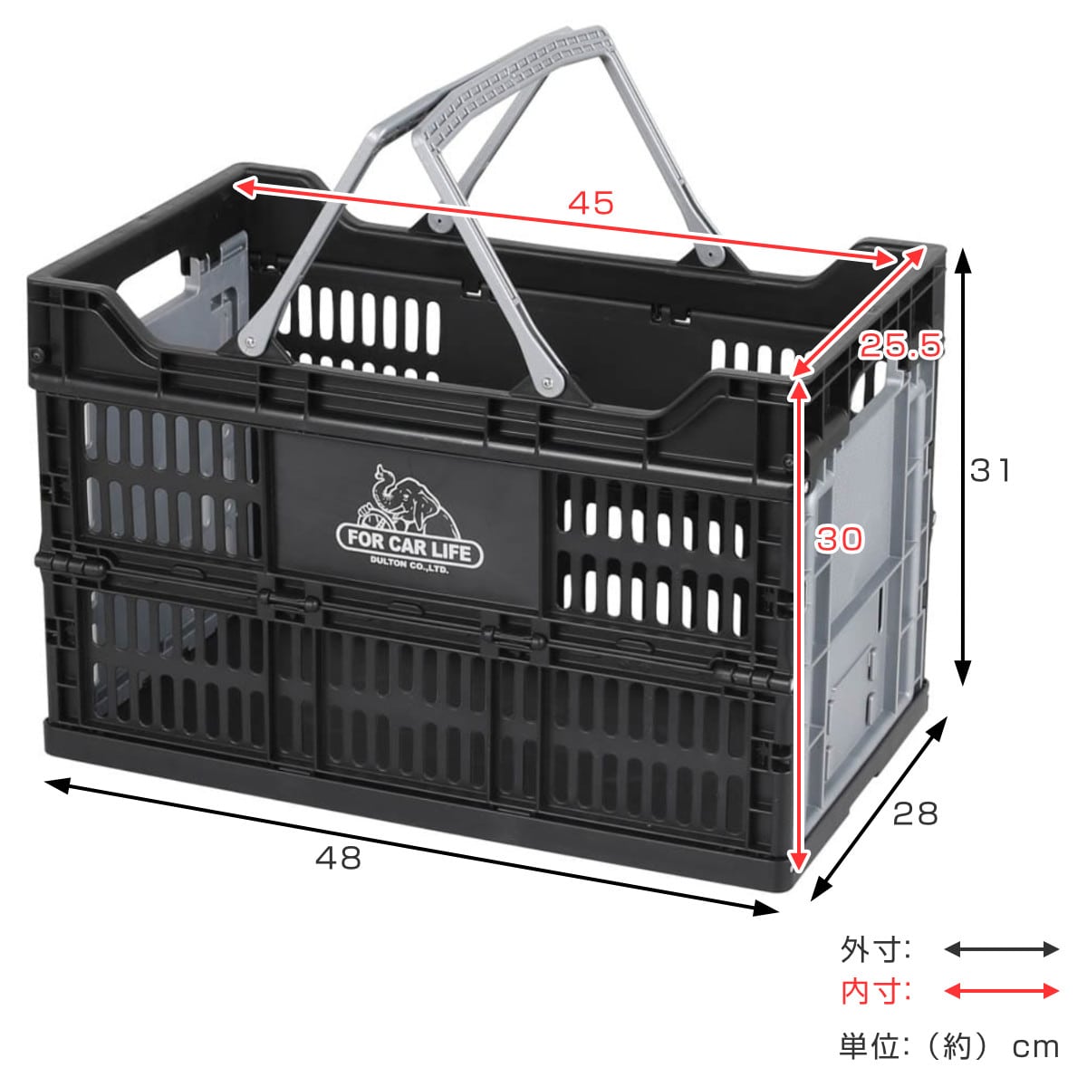 | サイズ | 外寸:約 幅48×奥行28×高さ31(cm) 内寸:約 幅45×奥行25.5×高さ30(cm) |