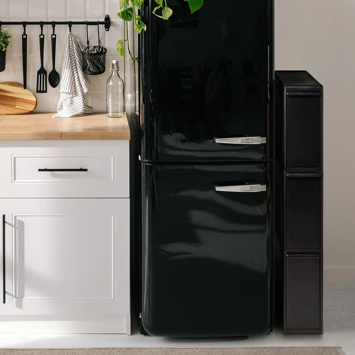 冷蔵庫や食器棚の横にあるちょっとした隙間にも収まる幅14cmのスリムなゴミ箱です。縦型のゴミ箱なので、キッチンのデッドスペースを有効活用して、1台でしっかり分別ができます。