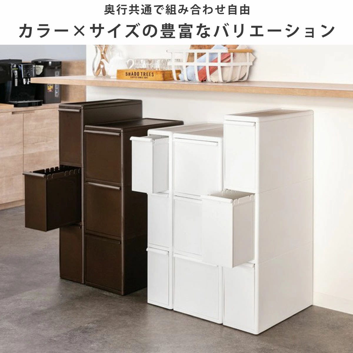 キッチンだけでなく、洗面台と洗濯機の間などでも使用可能で、ゴミ袋・洗剤・食品・ペットボトルなどの収納にもおすすめです。