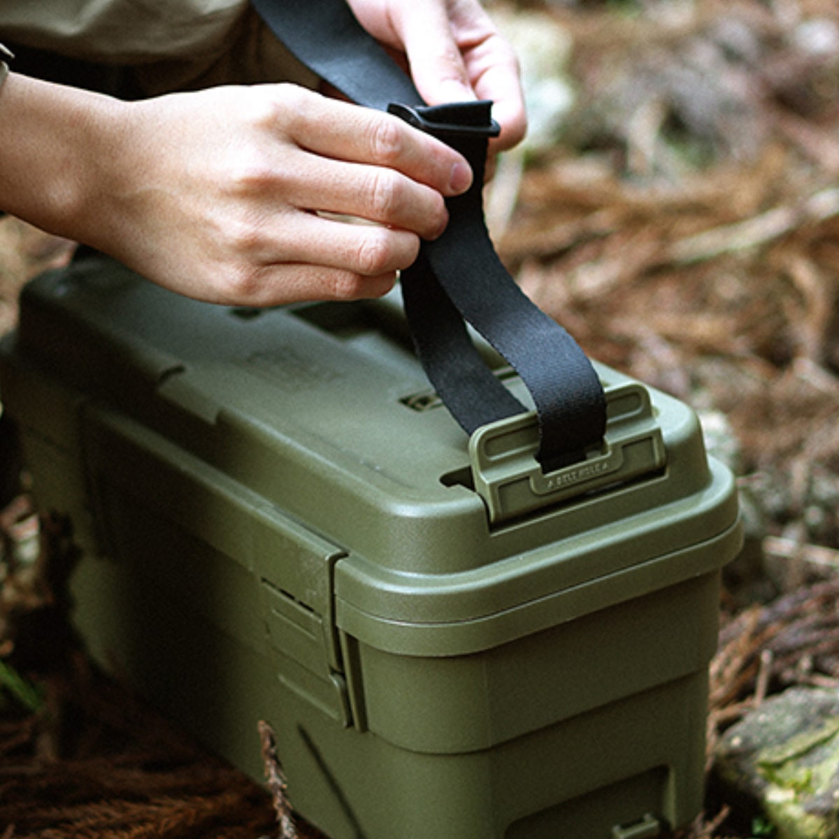 トランクカーゴシリーズの小型収納ボックスである『スタックカーゴ』は、ベルト通しを備えておりベルトを取り付けることが可能です。スタックカーゴに専用のショルダーベルトを取り付けることで、重い荷物を楽に持ったり、長い移動ができるなど、小回りを活かしたアクティブなレジャー・アウトドアが楽しめるようになります。