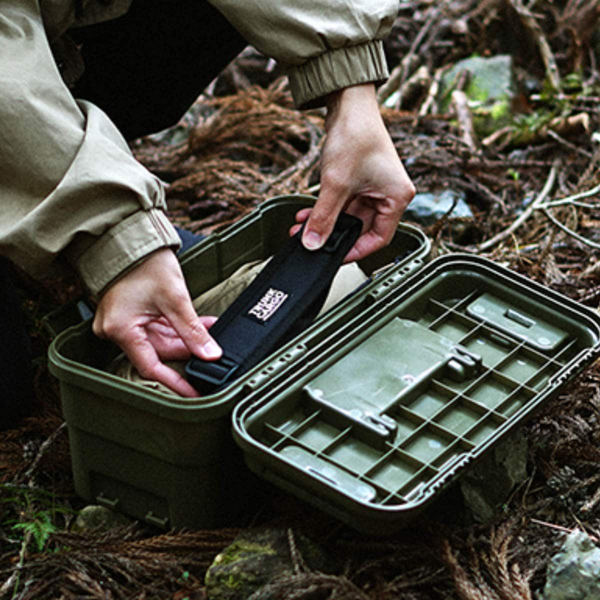 スタックカーゴは上下に連結して持ち運ぶことができる収納ボックスです。そんなスタックカーゴの特徴を活かしたまま、さらに便利してくれるのが専用ショルダーベルトです。ボックスを2段にスタッキングしたままベルトを取り付けることができるので、荷物をまとめて持ち運ぶことができます。釣りなどの場所を移動しつつ荷物を運ぶ必要があるレジャーに最適です。