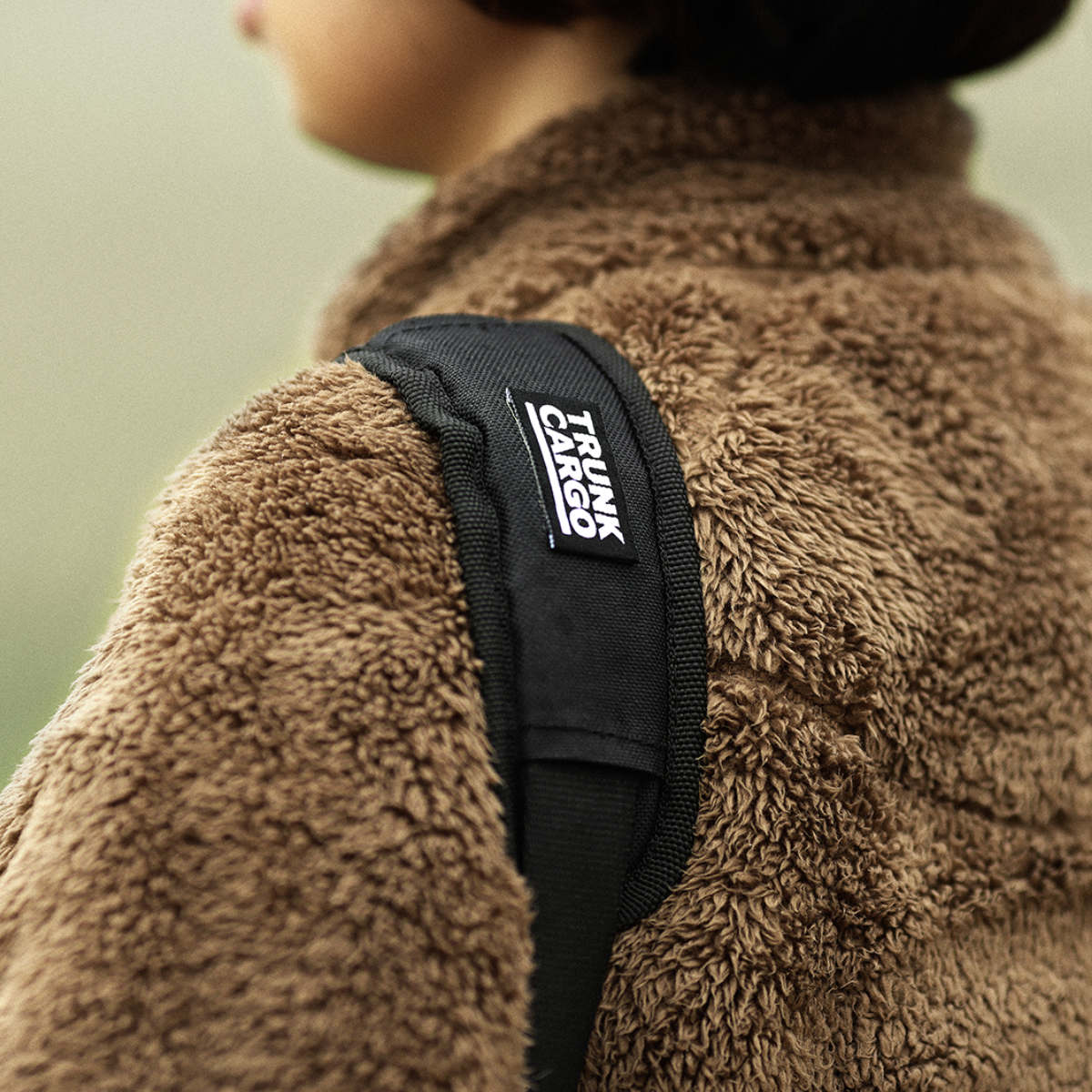 ポリウレタン製のクッションと、滑り止め加工を施したショルダーパッドにより、長時間使っていても肩に負担がかかりにくい設計になっています。パッド部分には、トランクカーゴのロゴが刺繍タグで付いています。