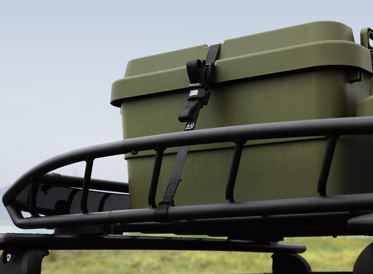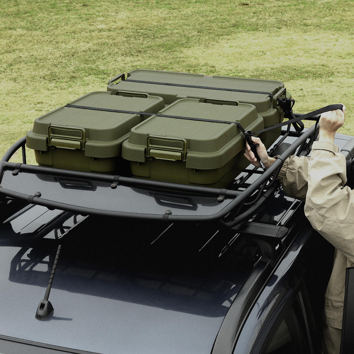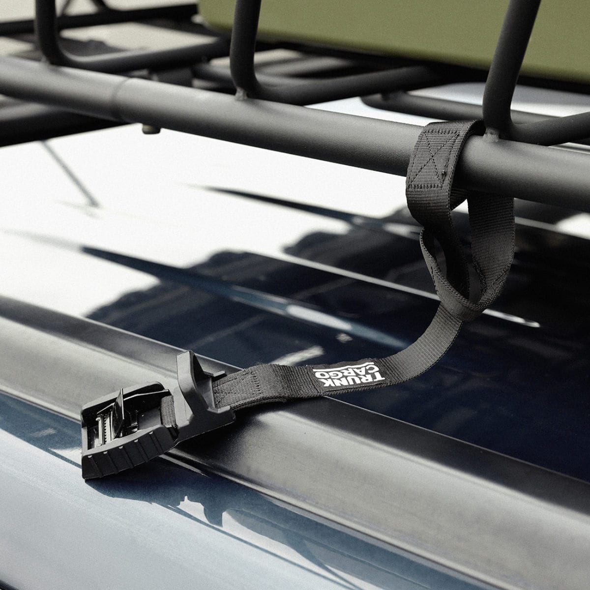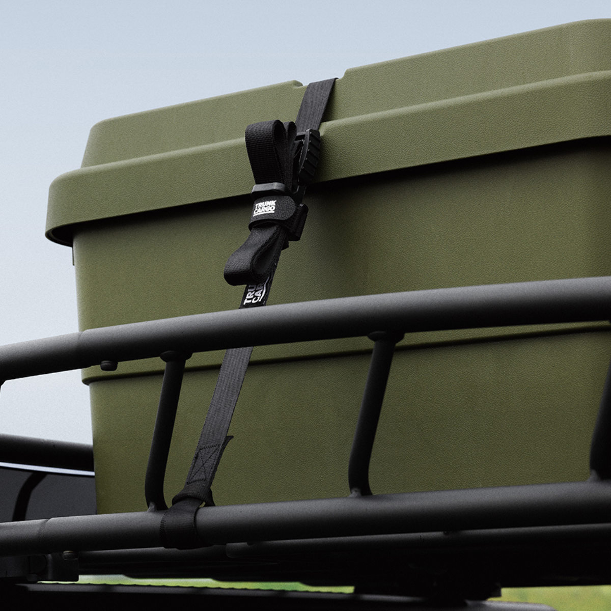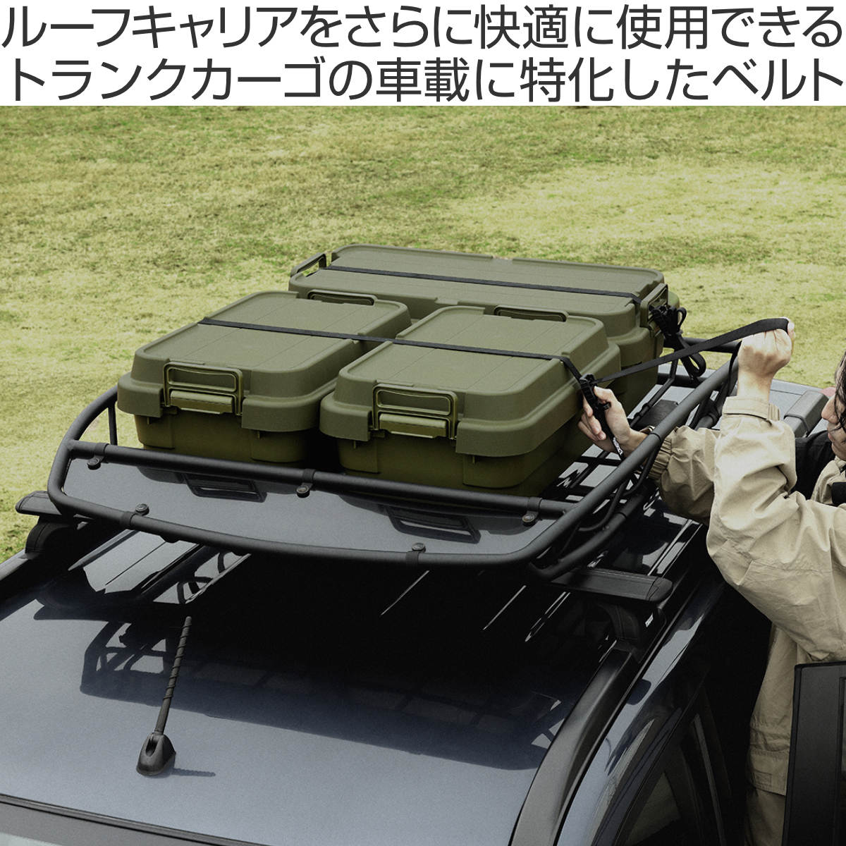 ※本品は破断強度280kgfのベルトを使用しています。固定の際は、ご使用になるルーフキャリアの積載重量を守って、70kgを超える重量物の固定には使用しないでください。