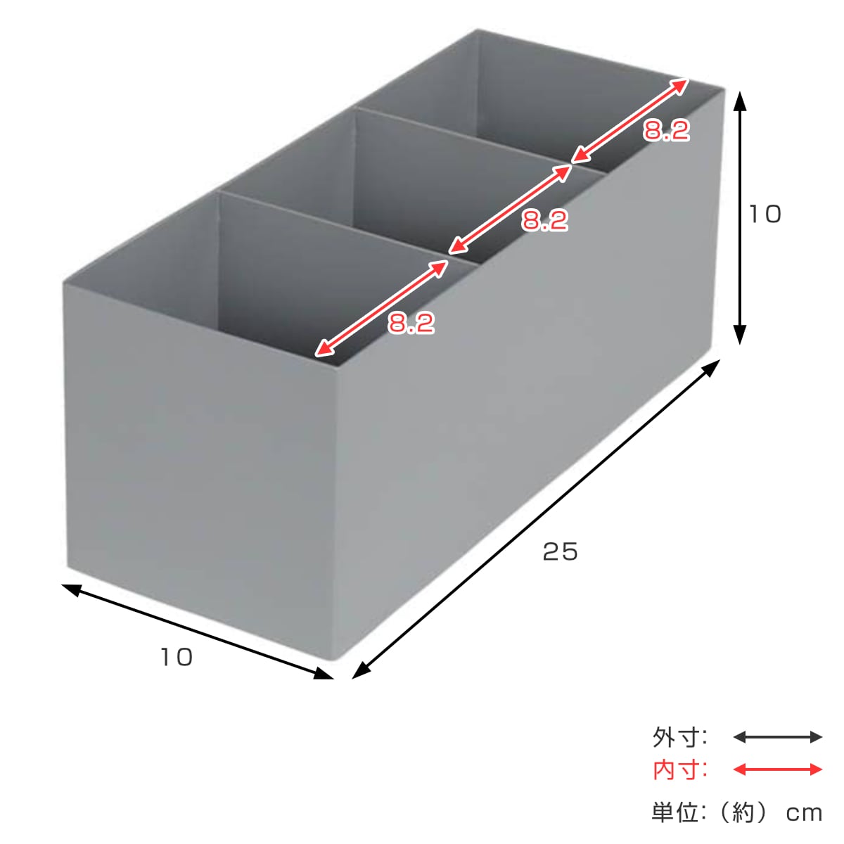 | サイズ | 約 幅10×奥行25×高さ10(cm) マス幅:約 8.2(cm) |