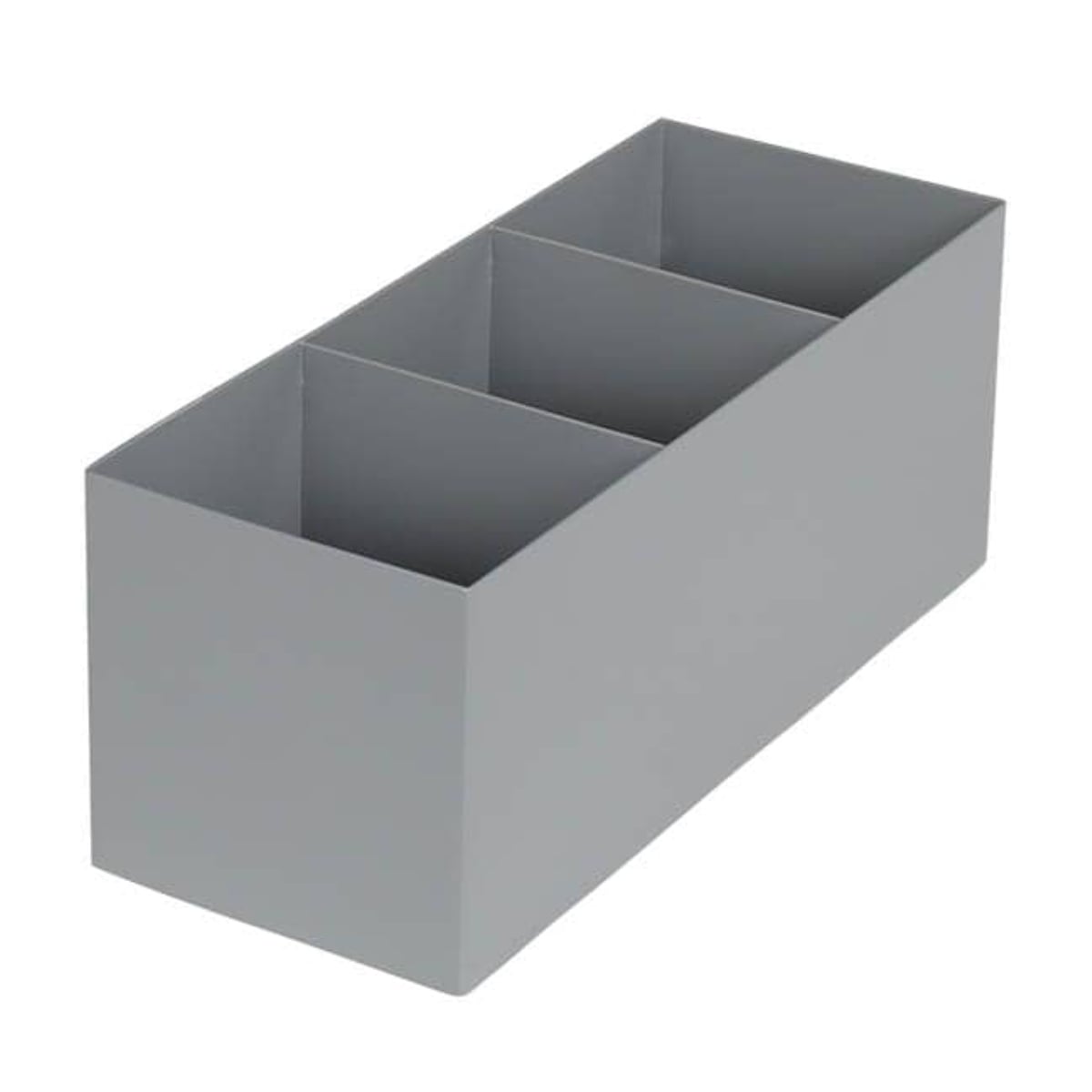 ステーショナリーや工具などを立てて収納できる仕切り付きです。