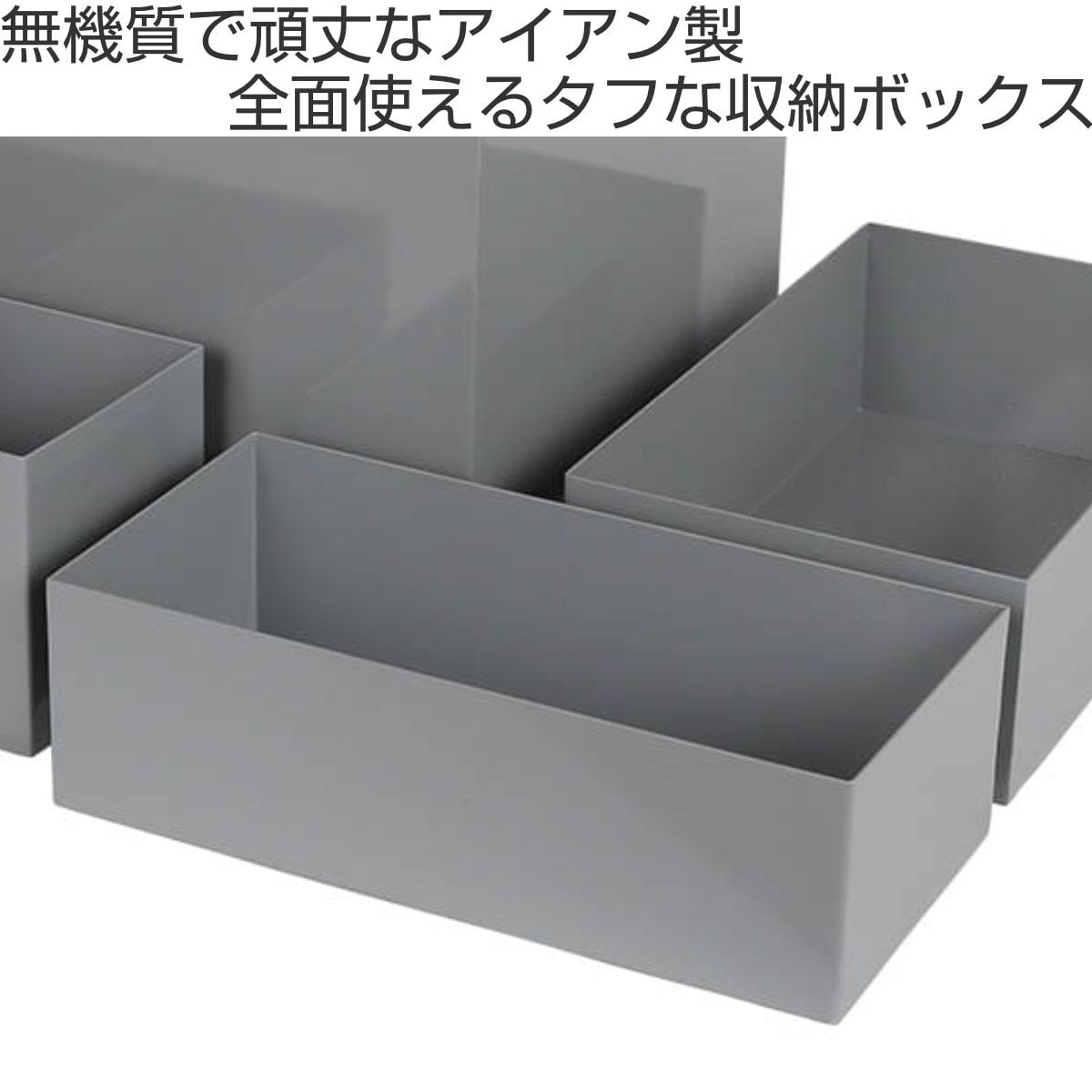 無機質で頑丈なアイアン製の収納ボックスです。しっかりとした重量感で、多少の衝撃でずれる心配がありません。収納としての使用はもちろん、逆さにすると置き台としても使用できます。