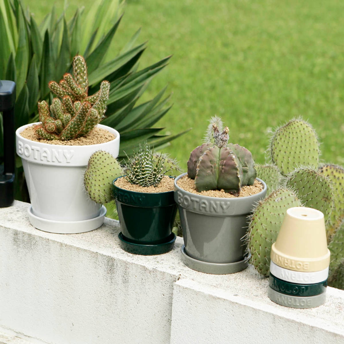 4サイズ、4色展開のBOTANYポットシリーズは、単体使用はもちろん、サイズ違いで揃えたり、カラー違いでポットとソーサーの組み合わせを変えたりと、シリーズで揃えて組み合わせ方も楽しめます。