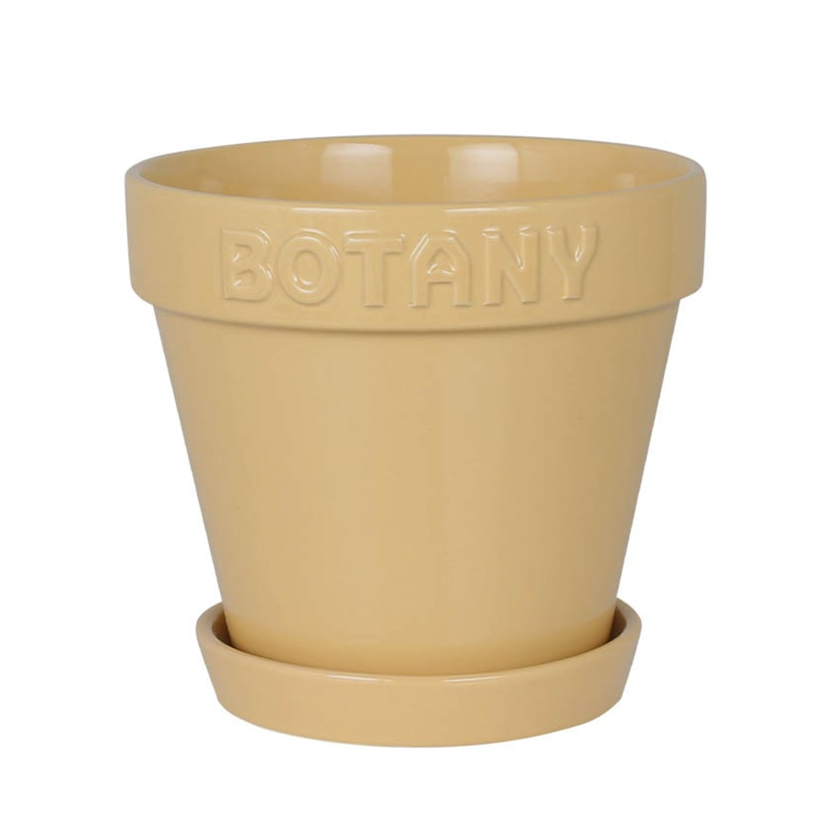 どことなくビンテージ感のあるカラーリングに、ぽてっとしたロゴが特徴的なBOTANYポット6号鉢です。シンプルなデザインでインテリアにもスッと溶け込み、植物をより引き立てます。