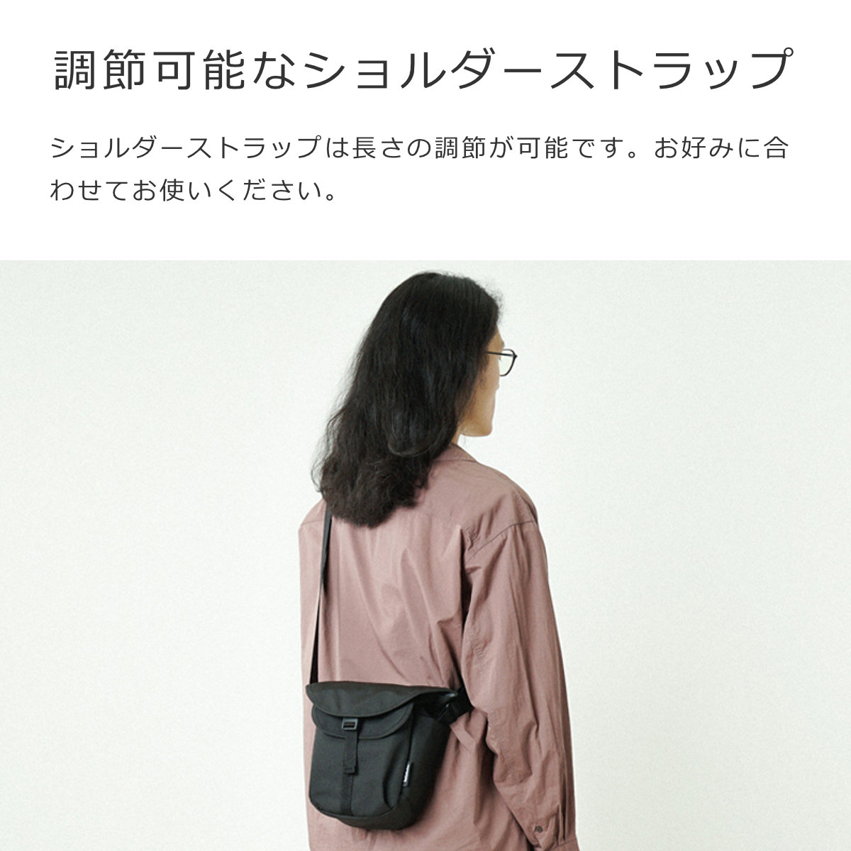 ショルダーストラップは長さの調節が可能です。お好みに合わせてお使いください。
