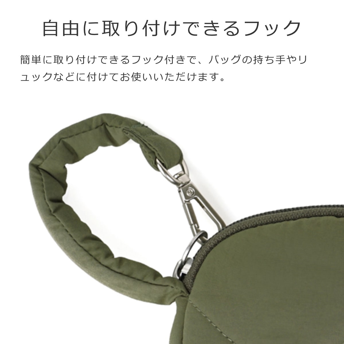 同じシリーズのバッグやお手持ちのバッグに付けて使用できる小物入れポーチです。ふわふわのキルト生地でクッション性があり、よく使うものを収納したりすぐに取り出せるのでとても便利です。