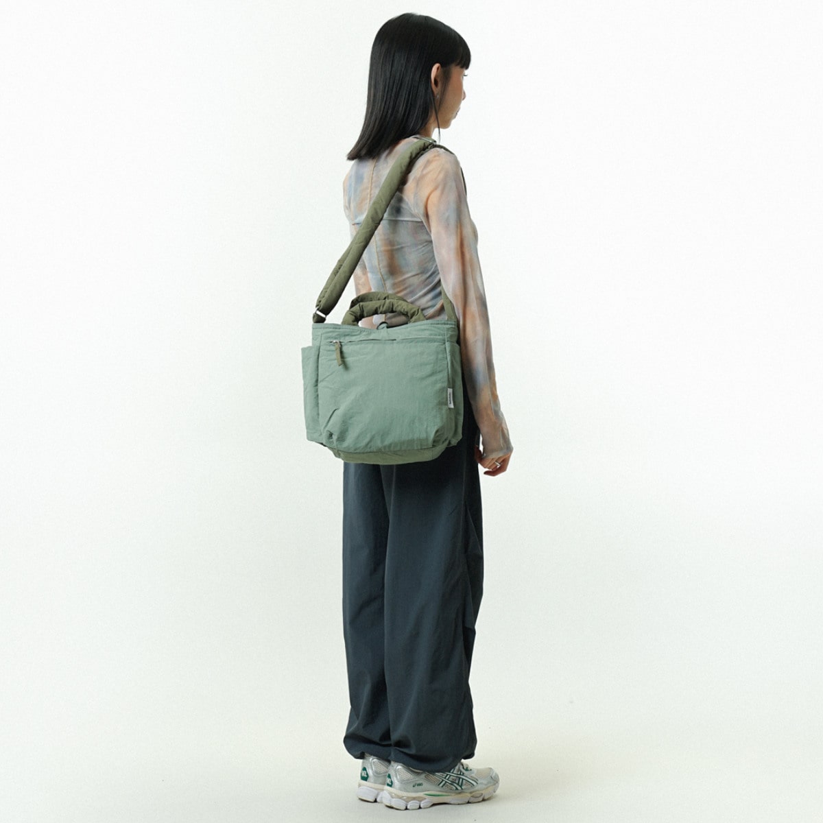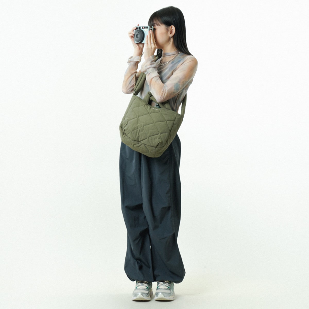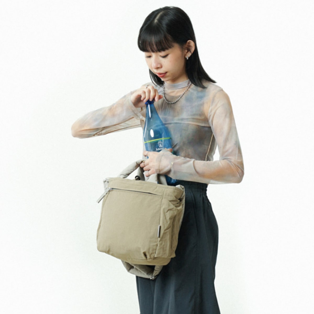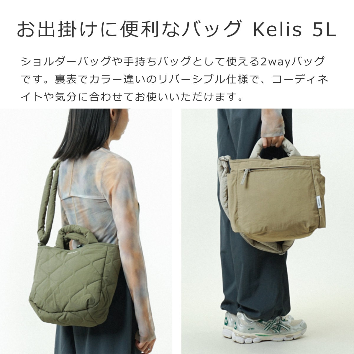 ショルダーバッグや手持ちバッグとして使える容量約5Lのバッグです。裏表カラー違いのリバーシブル仕様で、 コーディネイトや気分に合わせて使えます。
