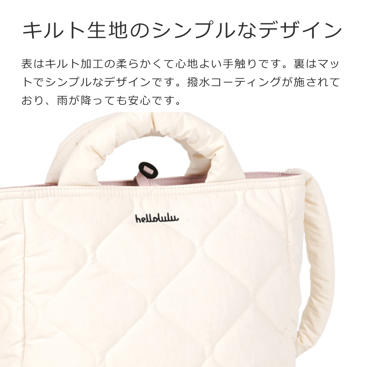 ふわふわしたキルト加工の可愛いデザインです。柔らかくて心地よい手触りを感じることができます。裏はマットでシンプルなデザインです。撥水コーティングが施されており、雨が降っても安心です。