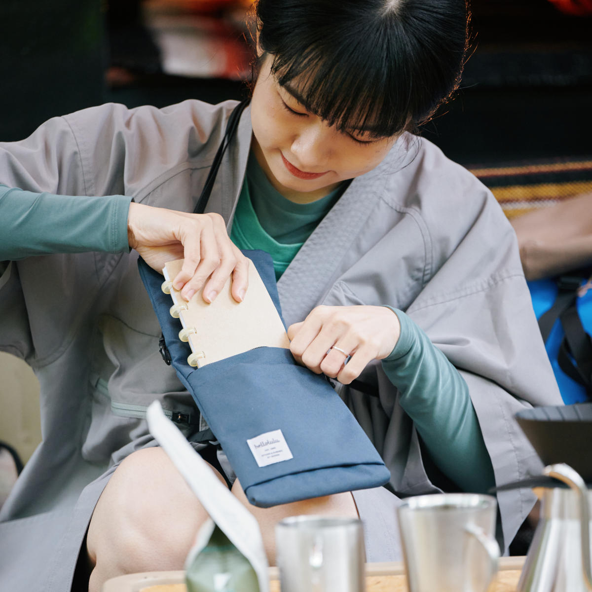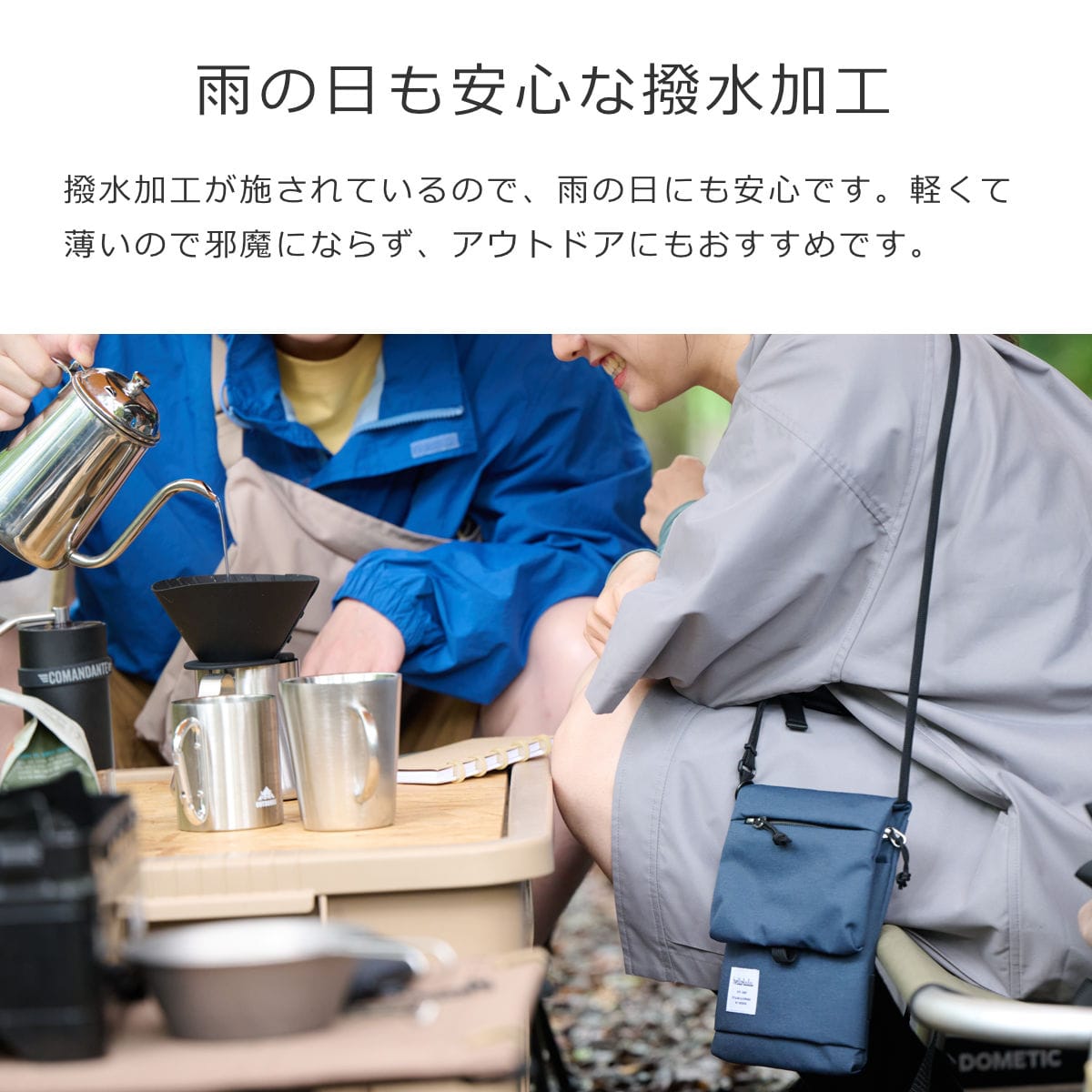 リサイクルしたポリエステル素材を使用しており、軽量で使いやすいだけでなく環境にも優しいアイテムです。撥水加工が施されているので、アウトドアにもおすすめです。