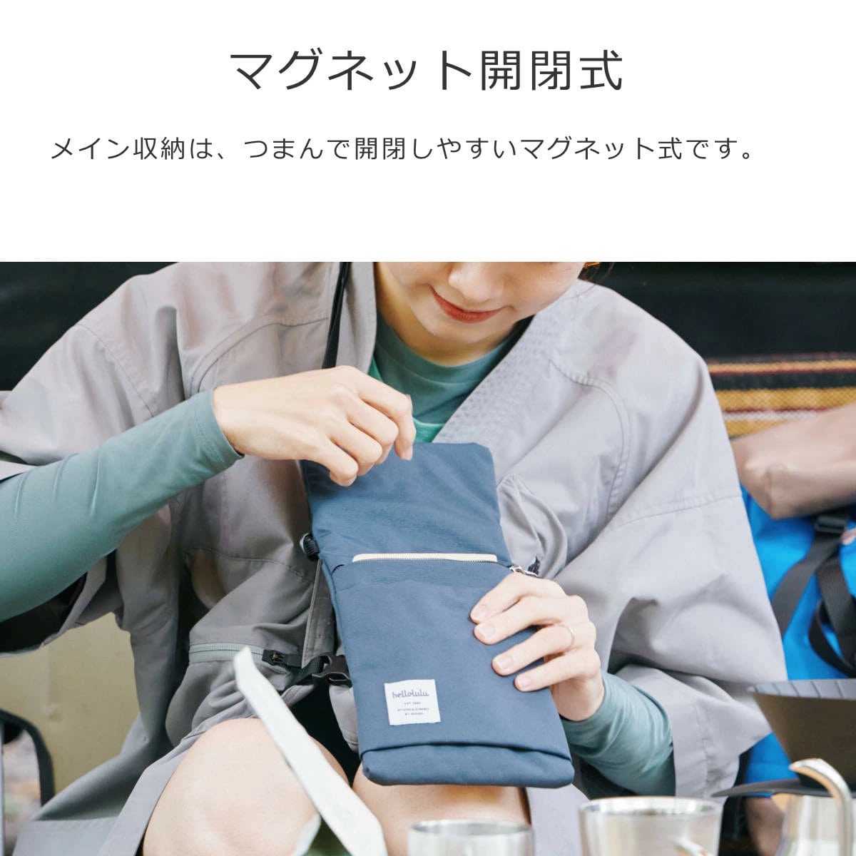 メイン収納は、つまんで開閉しやすいマグネット式です。