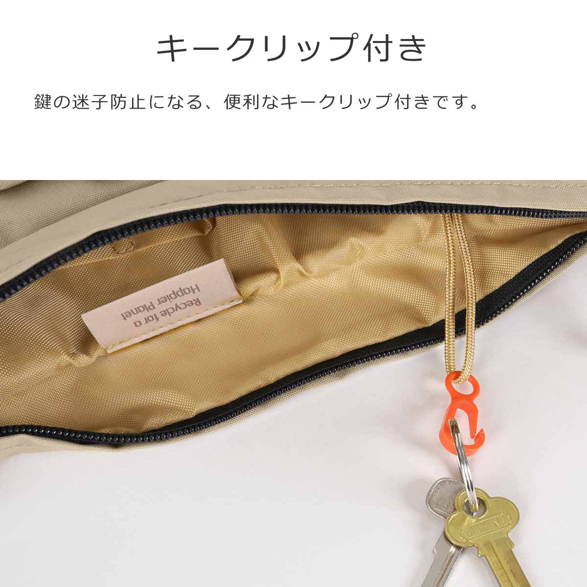 鍵の迷子防止になるキークリップ付きです。