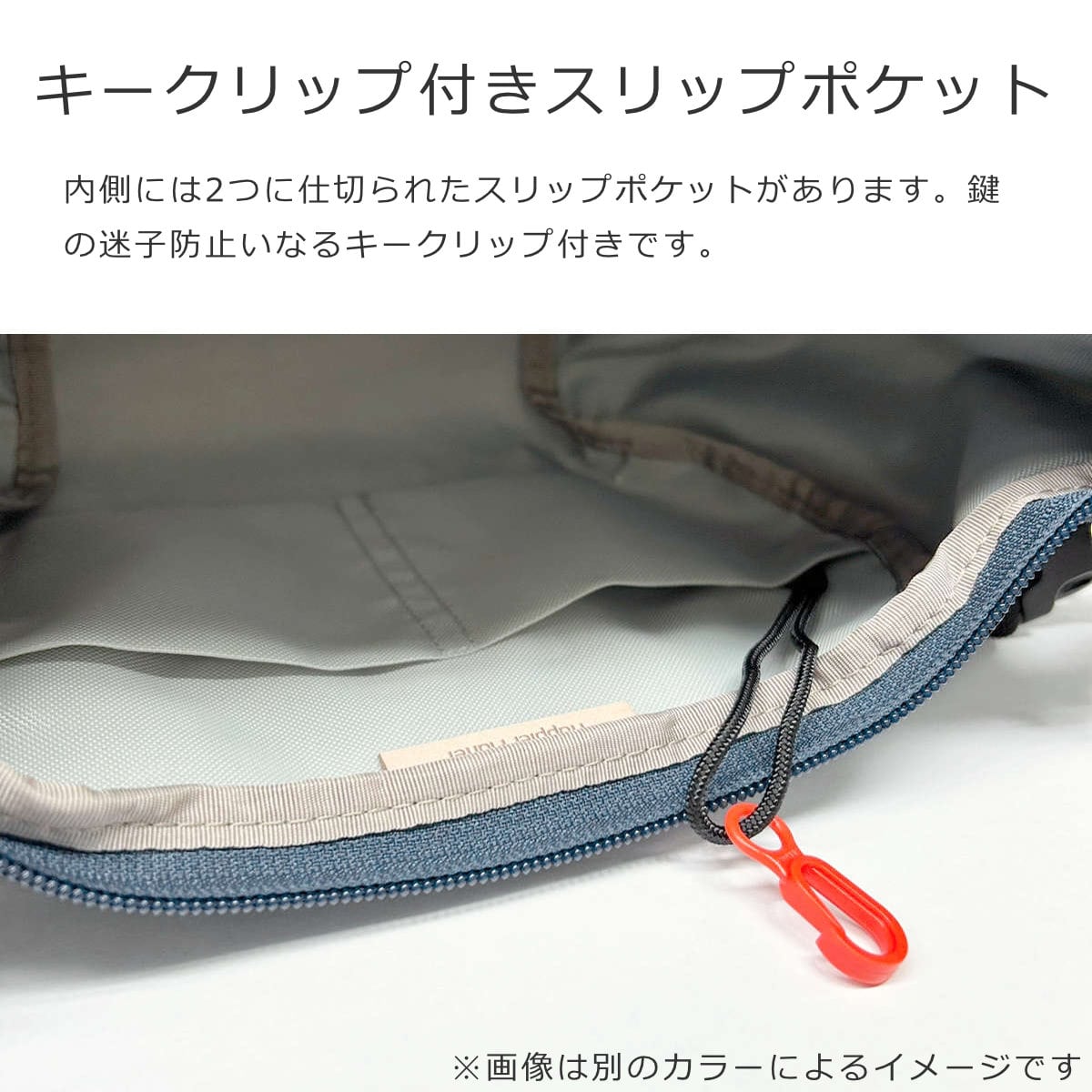 内側には2つに仕切られたスリップポケットがあります。鍵の迷子防止になるキークリップ付きです。