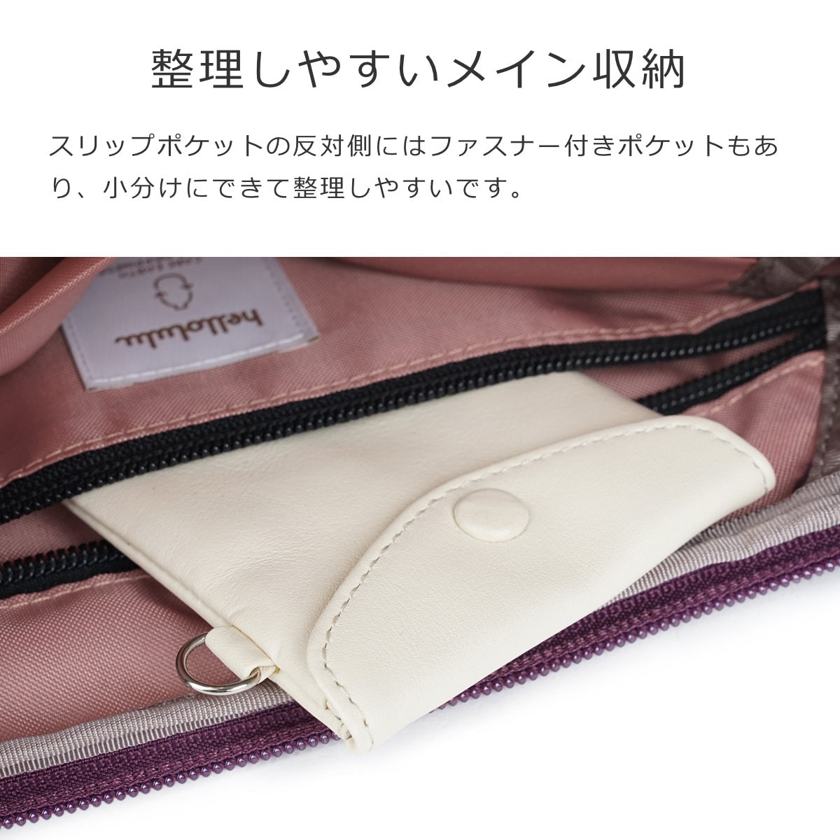 スリップポケットの反対側にはファスナー付きポケットもあり、小分けにできて整理しやすいです。
