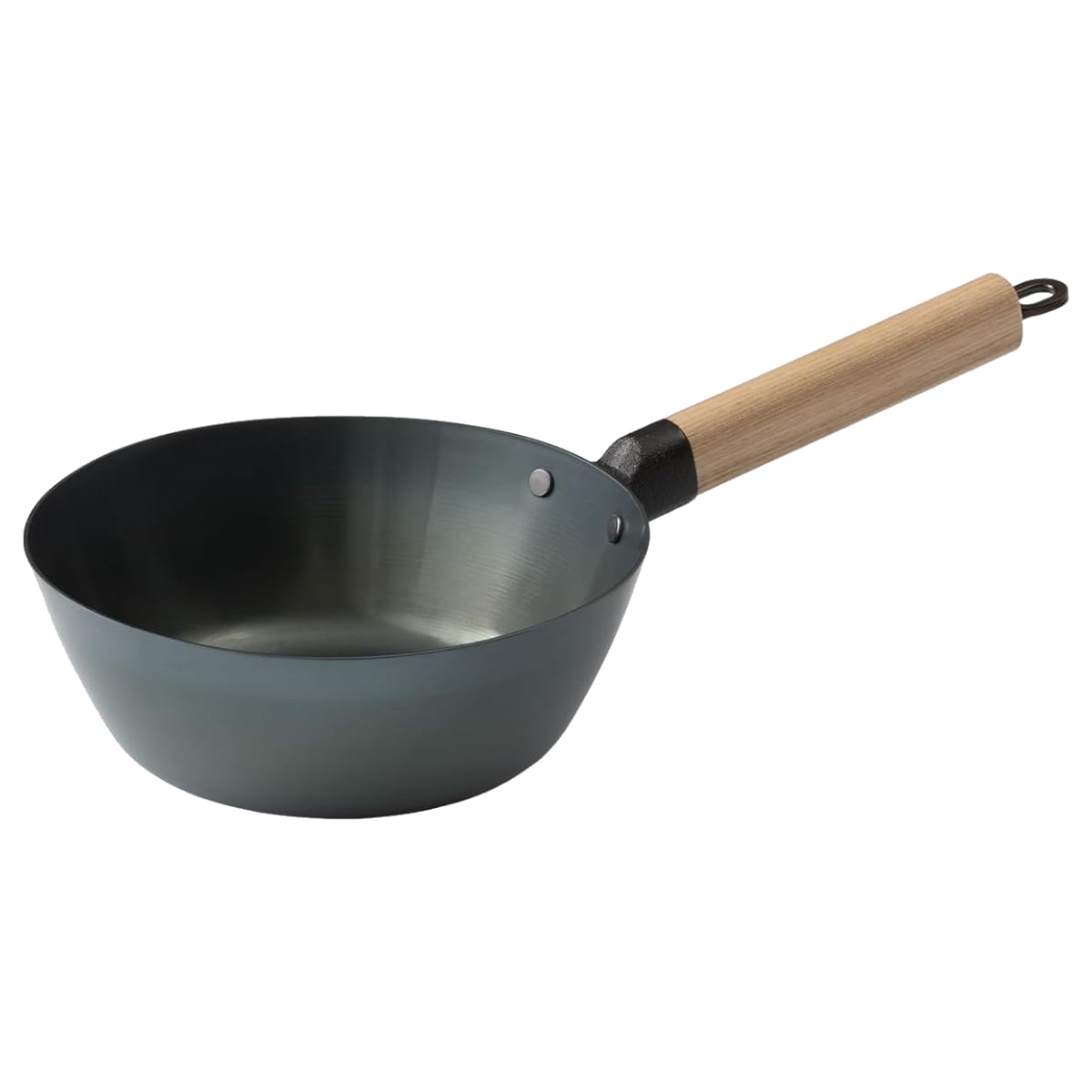 包丁のように楕円形の握りやすいハンドルなので、重たい鉄フライパンでも扱いやすくなっています。無塗装の天然木を使用し、本体同様に使い込むほど手になじみます。