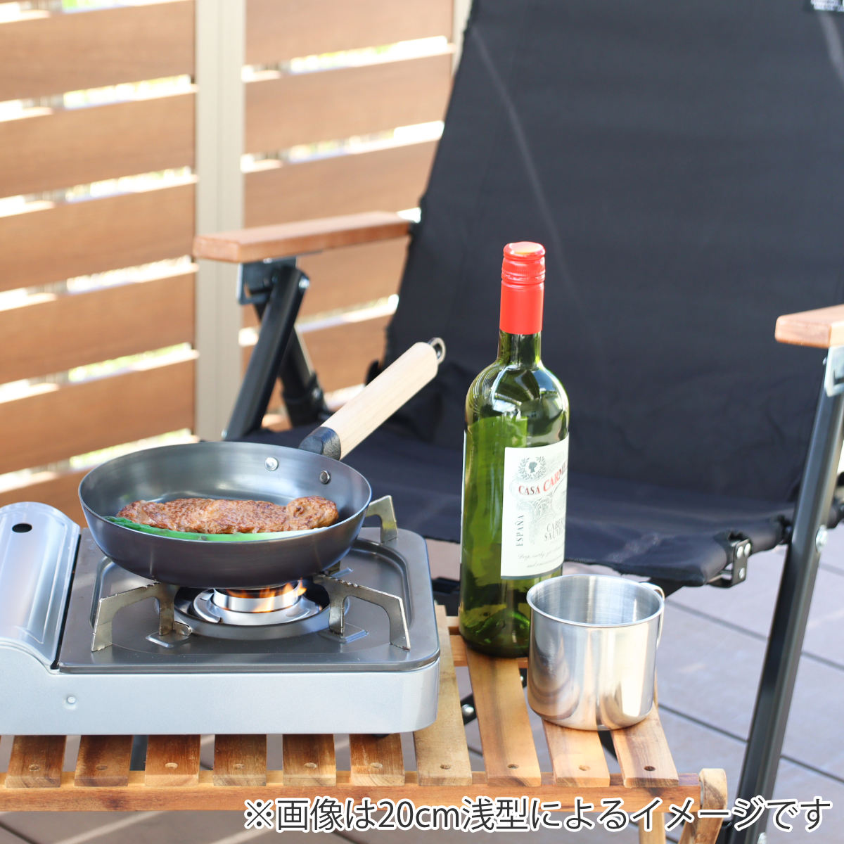 丈夫でキズがつきにくい鉄フライパンは、アウトドアにも最適です。取っ手を外して箱に入れれば持ち運びも簡単です。