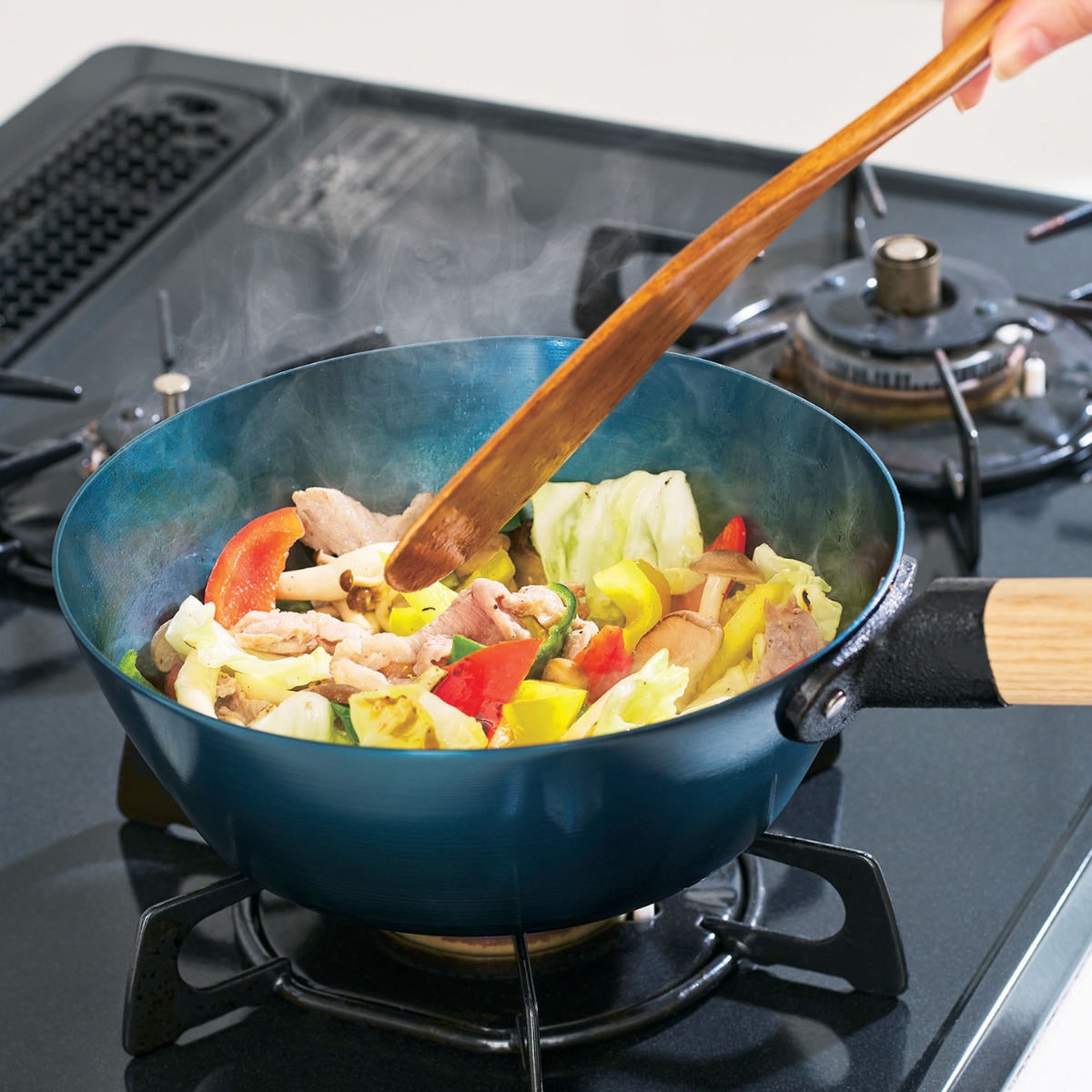 熱伝導性と蓄熱性に優れているので、表面の温度ムラが少なく、食材をすばやく均一に加熱できるのが特徴です。食材の旨みをしっかり引き出し、使い込むほど油がなじみ、愛用しながらさらに良い状態へと育てていくことができます。
