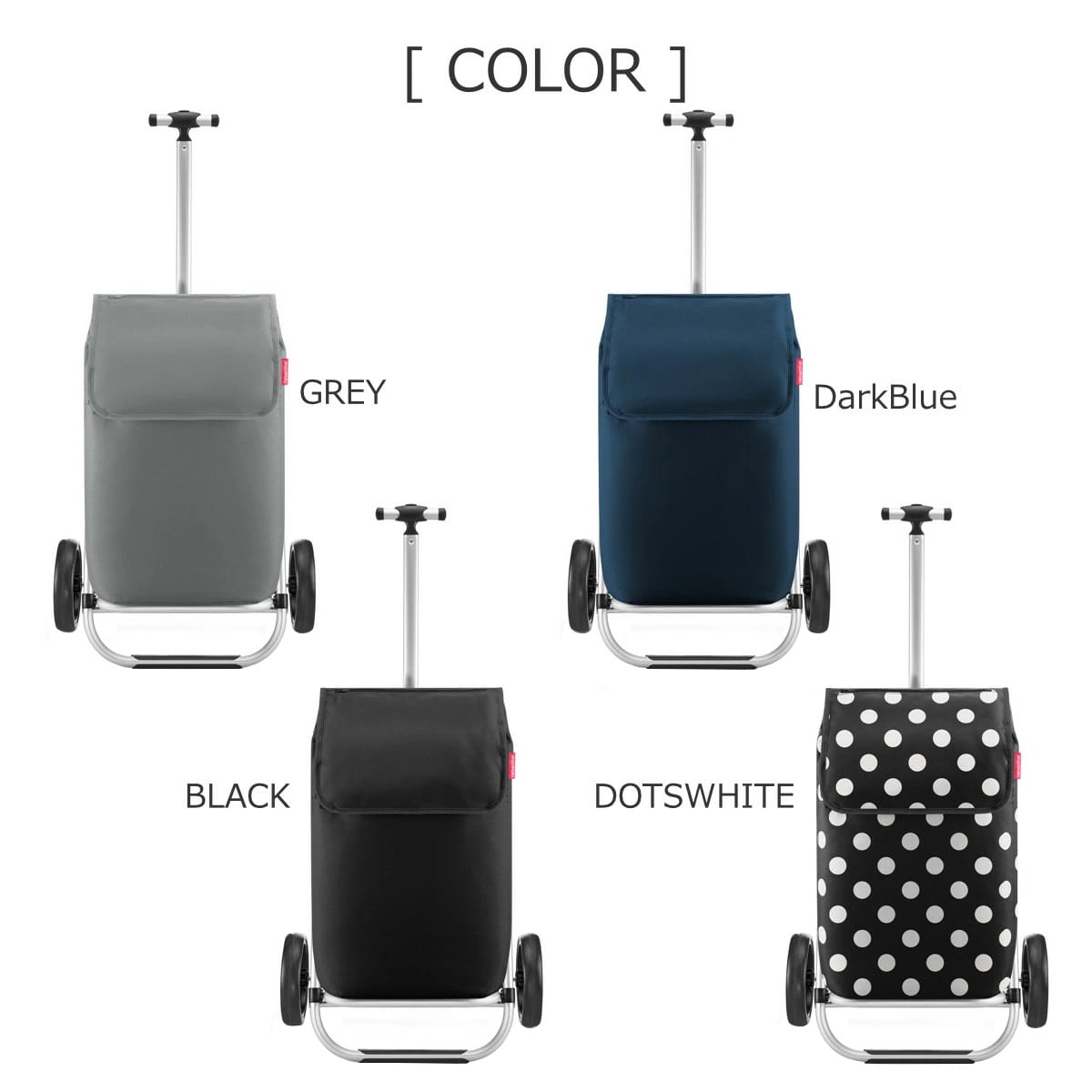 | 材質 | カート:アルミニウム、スチール、ポリプロピレン、EVA(タイヤ) バッグ:ポリエステル |
