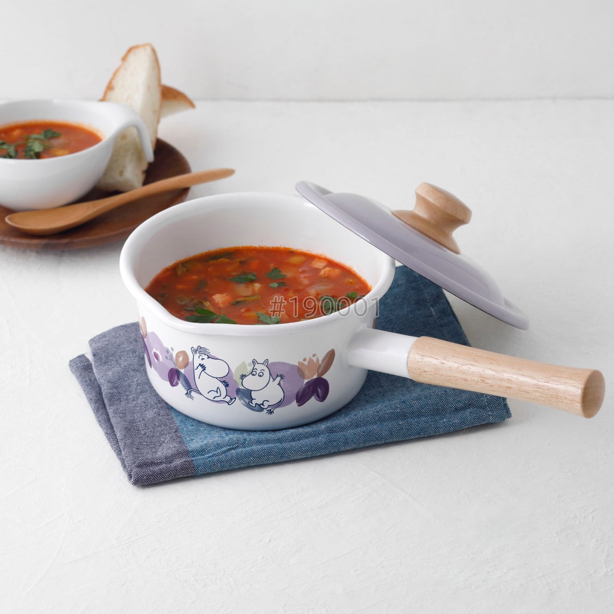 北欧風の花柄にムーミンたちがのびのびと楽しく過ごす様子が描かれたシリーズです。華やかな色合いに伝統的な製法でつくるホーローの風合いがキッチンを楽しく彩ります。