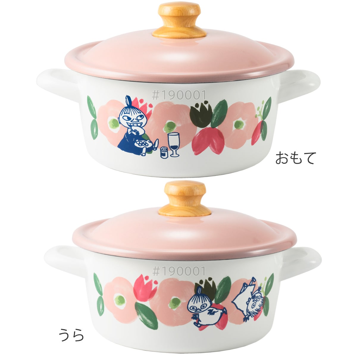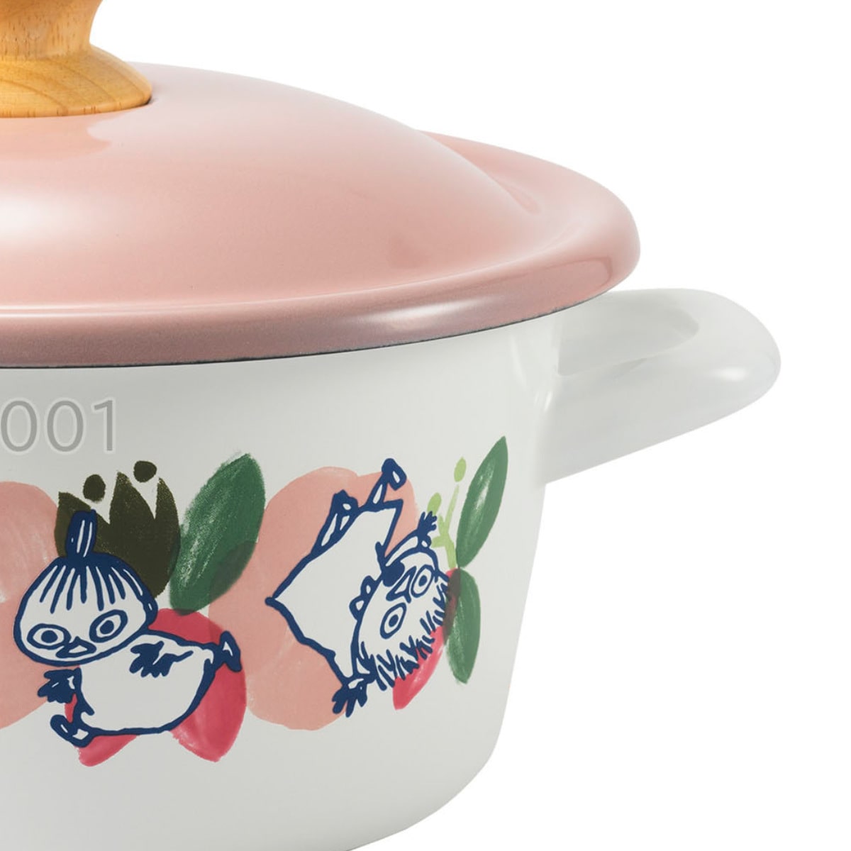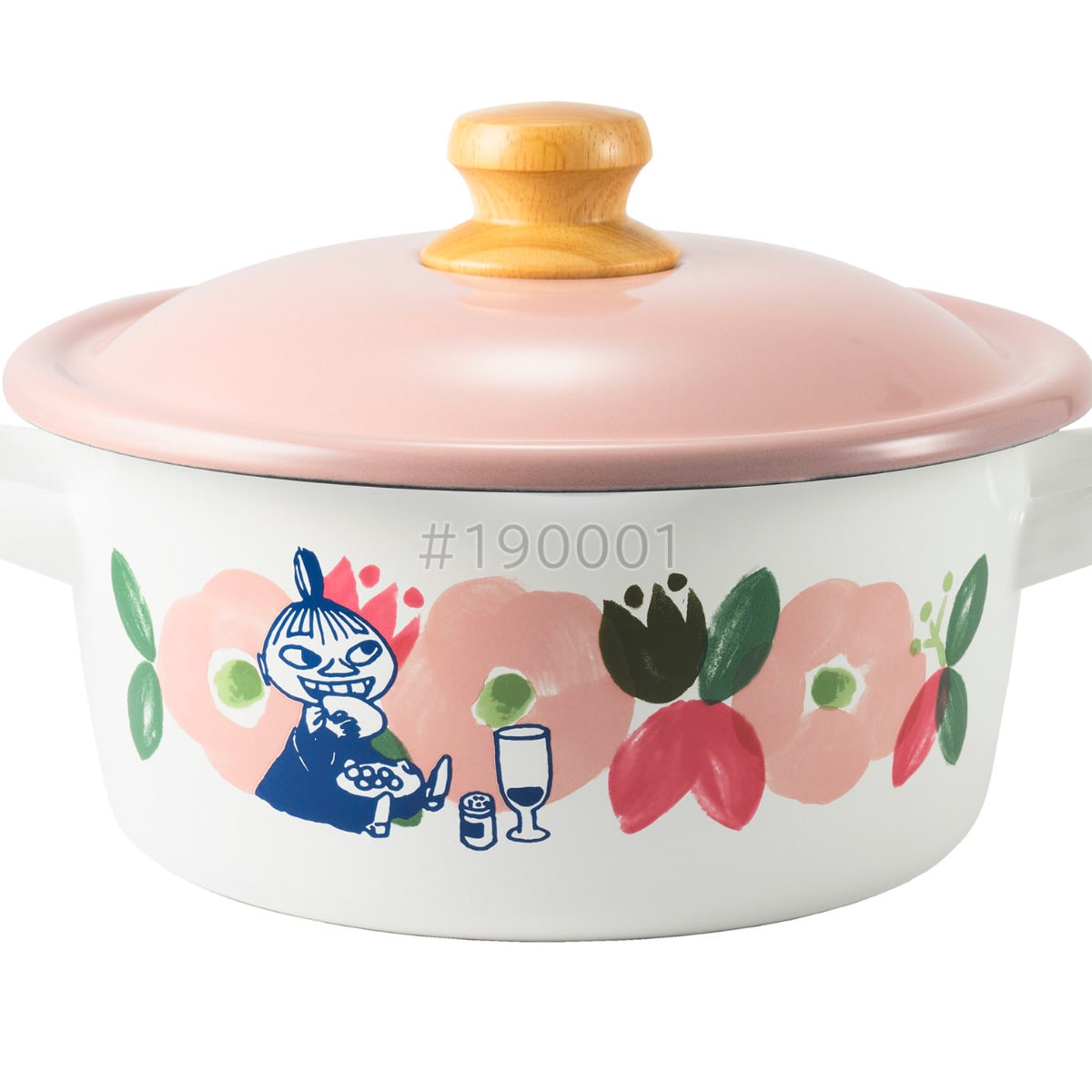 北欧風の花柄にムーミンたちがのびのびと楽しく過ごす様子が描かれたシリーズです。華やかな色合いに伝統的な製法でつくるホーローの風合いがキッチンを楽しく彩ります。