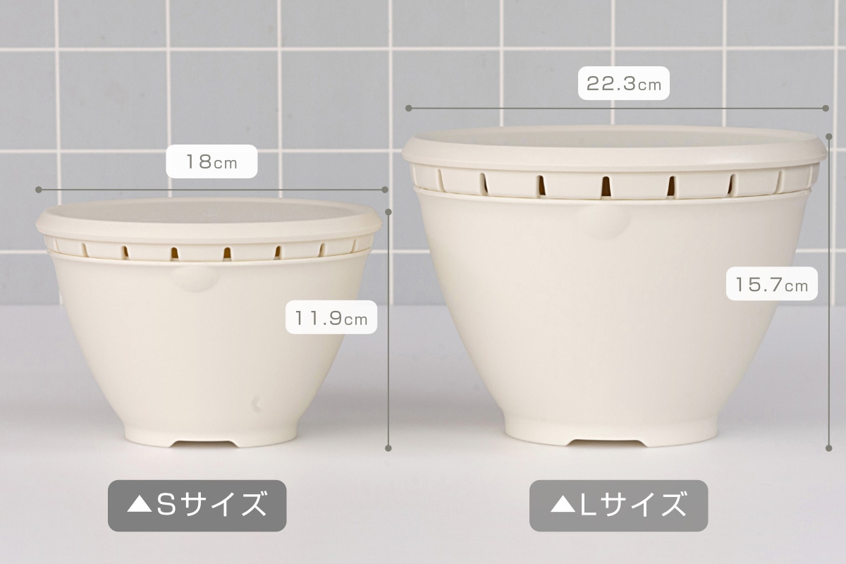 | サイズ | Sサイズ:約 直径18cm×高さ11.9cm Lサイズ:約 直径22.3cm×高さ15.7cm |