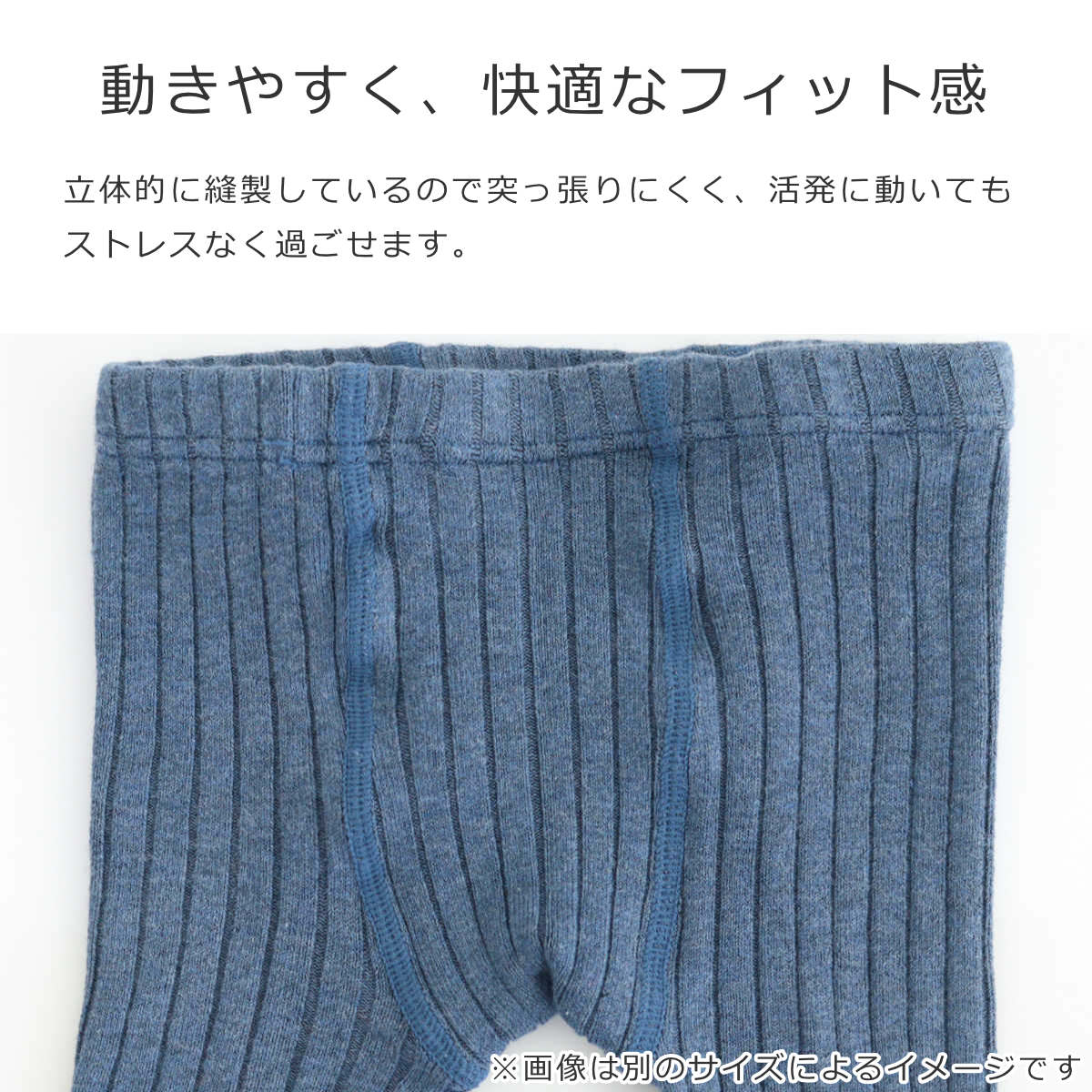 立体的に縫製しているので突っ張りにくく、活発に動いても快適です。