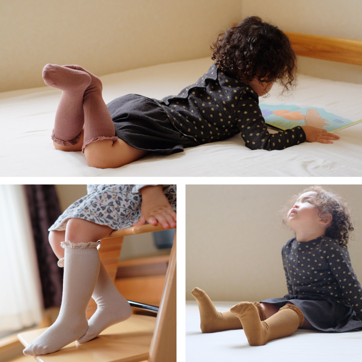 ■口ゴム部に立体感のあるフリルが付いたハイソックスです。